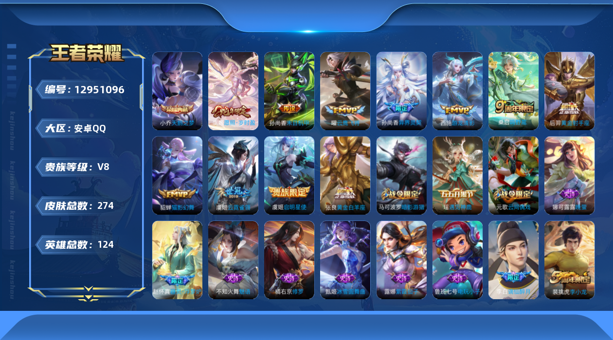 [12951096]发育路35段【特价急出/详情看图】:安卓Q-V8-最强王者段位-124英雄-274皮肤-1典藏-11传说-76史诗