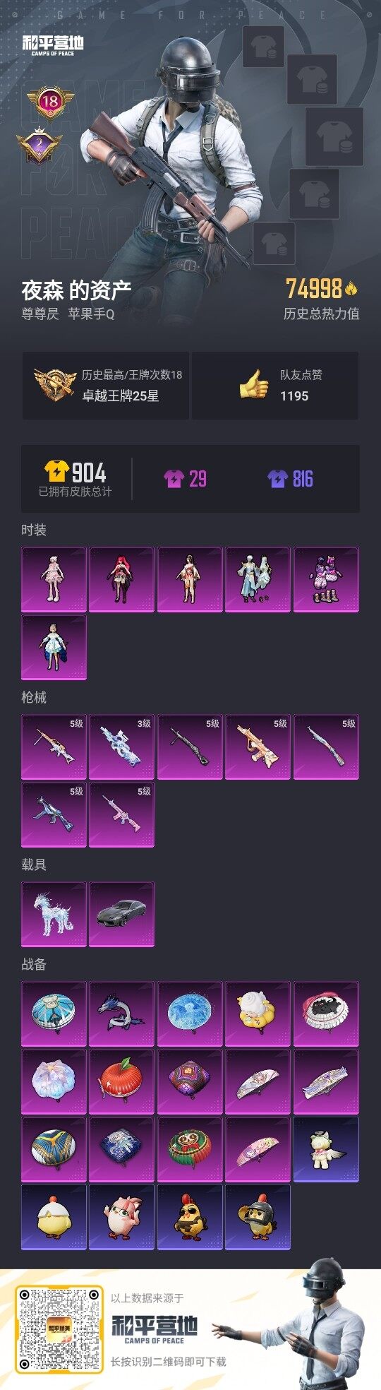 - PX_2111853-1 苹果手Q-15王牌印记-18粉装-7特效枪-2载具-97597热力值-232套装-270枪皮-3卓越印记-1传奇印记 【18粉装】,梦幻火箭,宝贝奶油派,新星烈龙,玩偶服-猪猪侠,恐龙拽拽,飓风飞鹰,星之信仰,紫钛骑兵,天禅智恒,寒光使者,极限特训,歌者泠鸢,枪炮玫瑰,金丰海韵,仲夏莫吉托,烟云彩露,超弦星,美琪 【7特效枪】M416-心之恋语-7级 M416-墨龙九天-