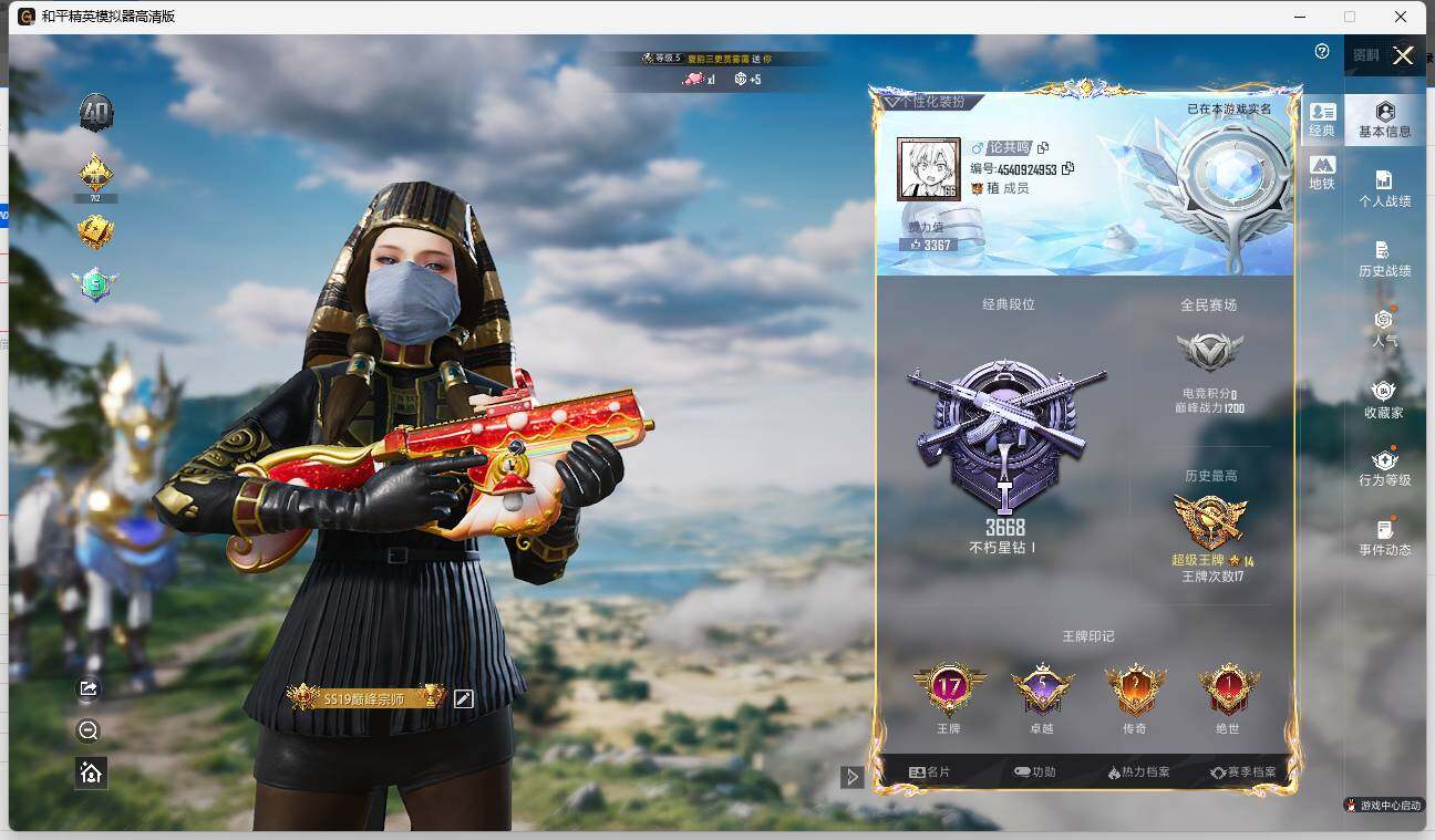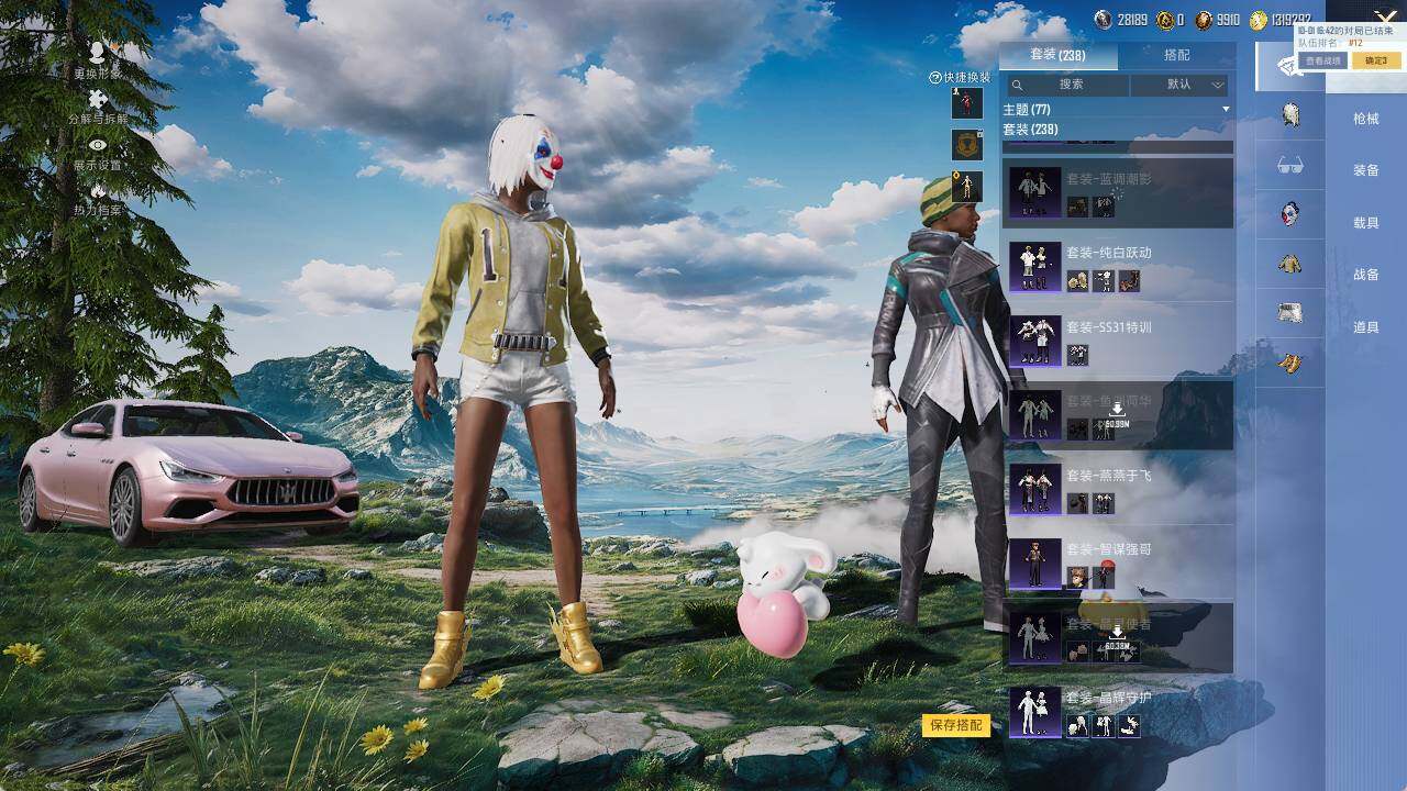 - [10824745]实名: 可修改 时装数: 319 枪械数: 105 战备数: 77 热门装扮: 幻彩电音 稀有枪皮: GROZA-镜光银凌,Kar98K-巳巳如意,DP-28-豹影疾电