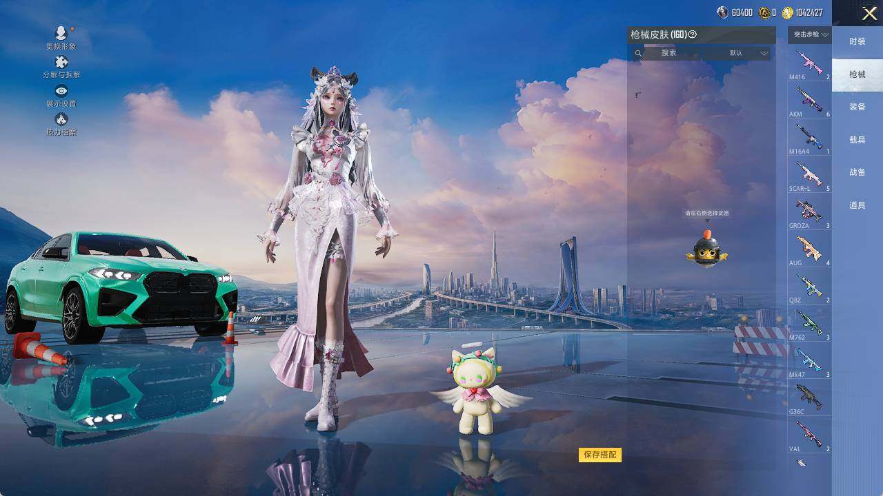 M416-电玩时刻,GROZA-镜光银凌,AUG-暖羊咩咩,M762-青锋波束,UMP45-量子极限,Kar98K-巳巳如意,M24-镜域双华