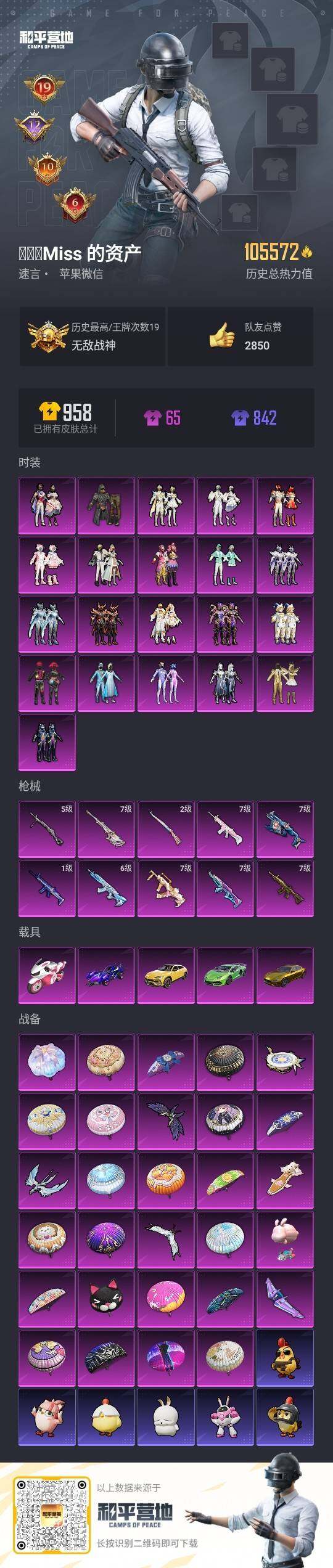 - PX_2093684- 苹果手Q-7王牌印记-3粉装-3特效枪-0载具-30978热力值-83套装-105枪皮-2卓越印记-1传奇印记 【3粉装】,冷漠罗丽,智耀战神,绚金战神 【3特效枪】SCAR-L-纯梦嫁纱-7级 Kar98K-巳巳如意-5级 Mk14-甜梦熊击-5级 【2稀有紫装】,暗影哥特,浪漫天命, 【83稀有时装】,SS31特训,SS33特训,SS32特训,彩虹兔,蓝冰羽,极速光影