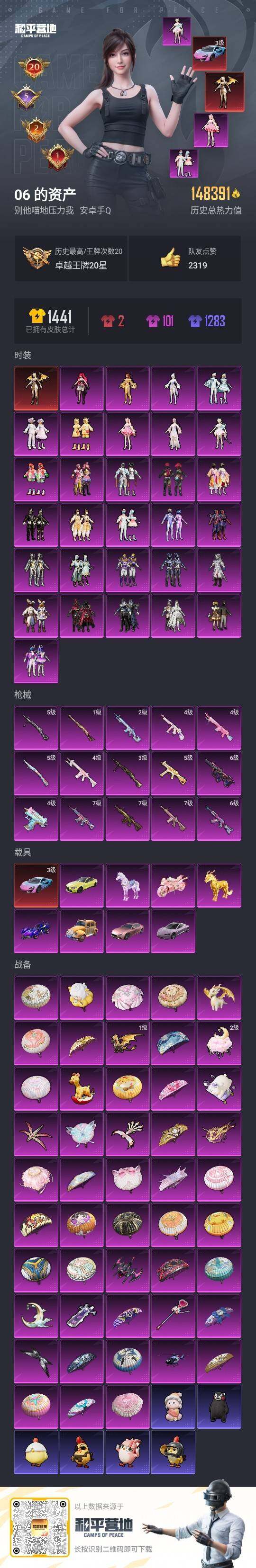 - PX_2114483- 安卓手Q-14王牌印记-1粉装-3特效枪-0载具-43116热力值-122套装-128枪皮-2卓越印记-0传奇印记 【1粉装】,飒粉甜心 【3特效枪】SCAR-L-纯梦嫁纱-7级 Kar98K-巳巳如意-5级 DP-28-豹影疾电-3级 【1稀有紫装】,龟仙人, 【122稀有时装】,SS31特训,SS33特训,SS32特训,星渊小夜曲,龟仙人,龙魂突击队,街头风暴,星途旅