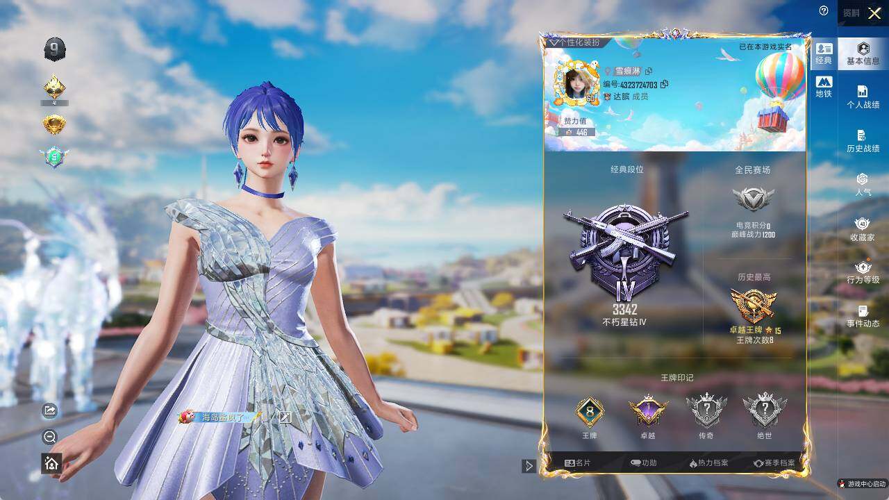 - PX_2096868-实名: 不可修改 贵族等级: V7 英雄数: 125 皮肤数: 169 荣耀水晶: 全息碎影 无双皮: 器灵·螭龙剑 传说皮: 炽阳神光,无双飞将,神器·狴犴令,山海·苍雷引,霜月吟,澜逐花归海 限定皮: 遇见飞天,龙胆,白晶晶,寅虎·赤拳,五谷丰年,诗剑行,山海·玄木吟,鸣野蒿