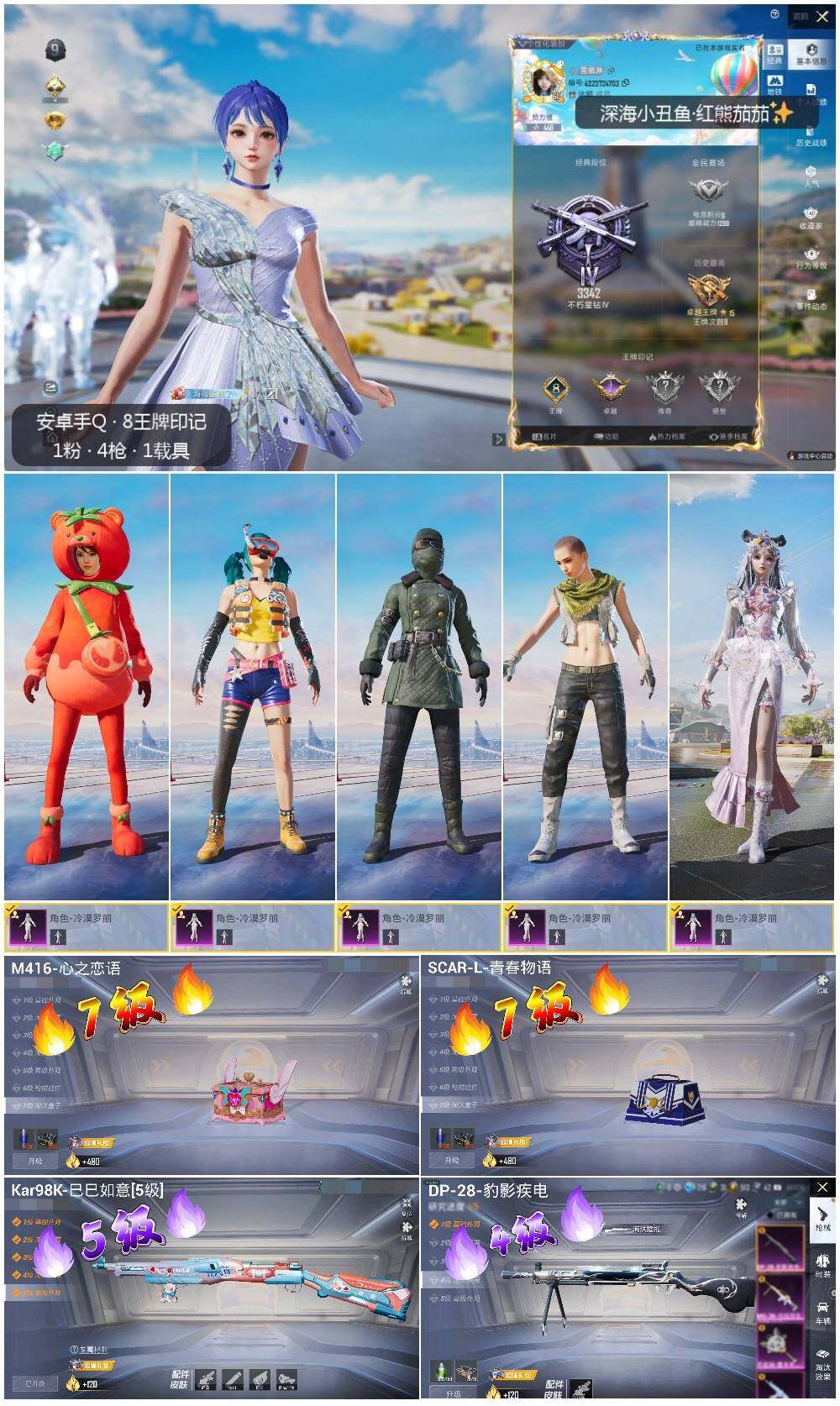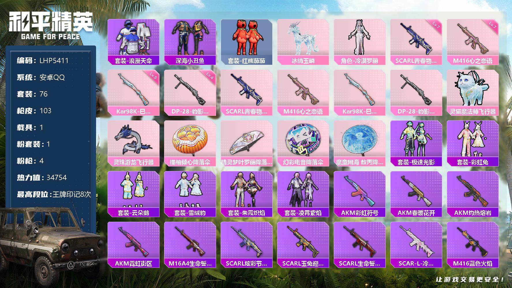 [12954904]素材身法号/璀璨碎片1200【特价急出/详情看图】:安卓 手Q-1粉装-4特效枪-1载具-2粉色飞行器-3.4w热力值-8王牌印记-76套装-103枪皮【热门品类】:套装-浪漫天命,套装-深海小丑鱼,套装-红熊茄茄【粉色载具】:冰绡玉鳞【粉色套装】:角色-冷漠罗丽【粉色枪皮等级】:SCAR-L-青春物语(七级),M416-心之恋语(七级),Kar98K-巳巳如意(五级),DP-28-豹影疾电(四级)【粉色飞行器】:灵猫魔法师飞行器,灵珠游龙飞行器