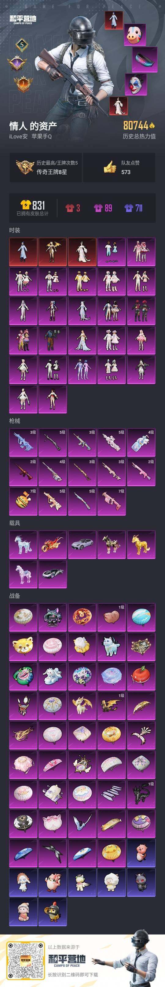 - PX_2101714-苹果QQ 历史总热力值:64494 粉装数量:6 特效枪数量:3 载具数量:1 王牌印记:9 历史最高段位:卓越王牌16星 套装数量:153 时装数量:611 枪械数量:213 战备数量:122 装备数量:265 载具:护世瑞兽 时装:套装-幻彩电音,套装-幻彩马卡龙,套装-星穹咏叹调,套装-烈焰拳霸,套装-缤纷油彩,套装-香水柠檬,套装-NV战队服,套装-SS10特训,套装