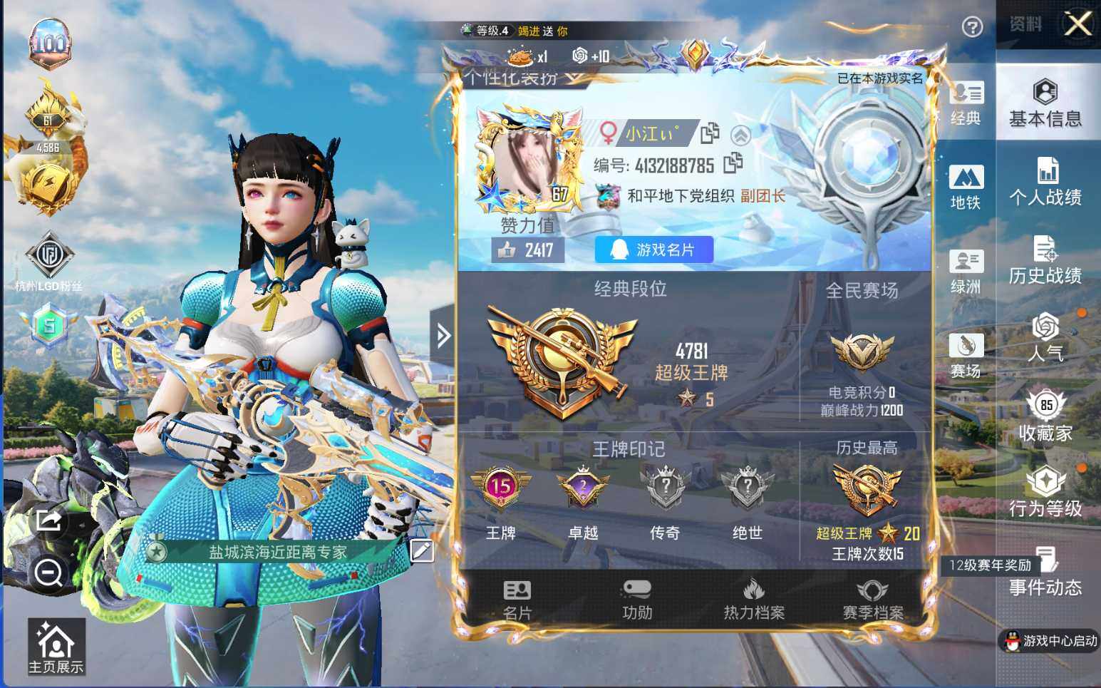 - [11522087]总资产:110.1 1干员外观 0近战传说 4传说枪械 高级安全箱(2×3)9.15号到期 段位:校官 可二次 可修改实名 烽火地带段位:黑鹰 全面战场段位:校官 哈夫币:90.351 传说武器皮肤:SMG45冲锋枪-骑士,复合弓-黑-天际线,CAR-15突击步枪-阿米娅,725双管霰弹枪-送葬人-无题密令 史诗武器皮肤:PKM通用机枪-蝮蛇,PKM通用机枪-荒野求生,SR-3M紧凑突击步枪-荒野求生,AKM突击步枪-林中猎手,M16A4突击步枪-竞赛选手,SVD狙击步枪-荒野求生,P90冲锋枪-暗影猎手,M1014霰弹枪-林中猎手,SV-98狙击步枪-林中猎手,PTR-32突击步枪-英雄,PSG-1射手步枪-无垢,AS Val突击步枪-典狱官,SV-98狙击步枪-囚徒,SCAR-H战斗步枪-囚徒,腾龙突击步枪-无垢,MP7冲锋枪-无垢,沙漠之鹰-曙光,Vector冲锋枪-阿萨拉文明,PKM通用机枪-英雄,M700狙击步枪-竞技风 干员外观:露娜-黑·天际线