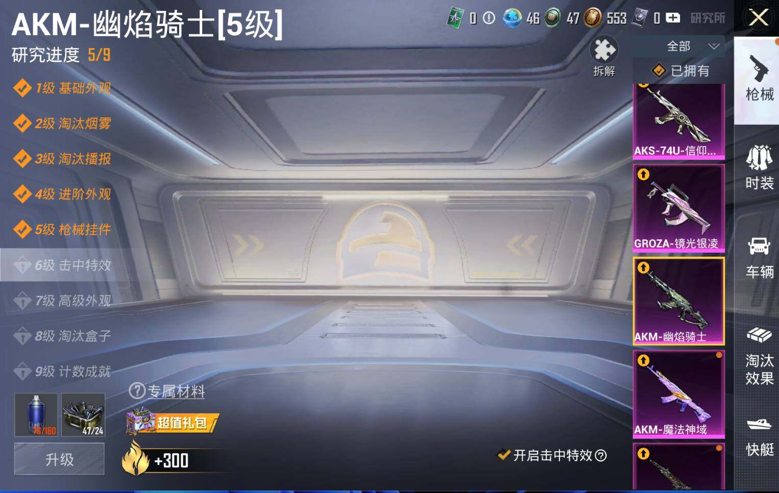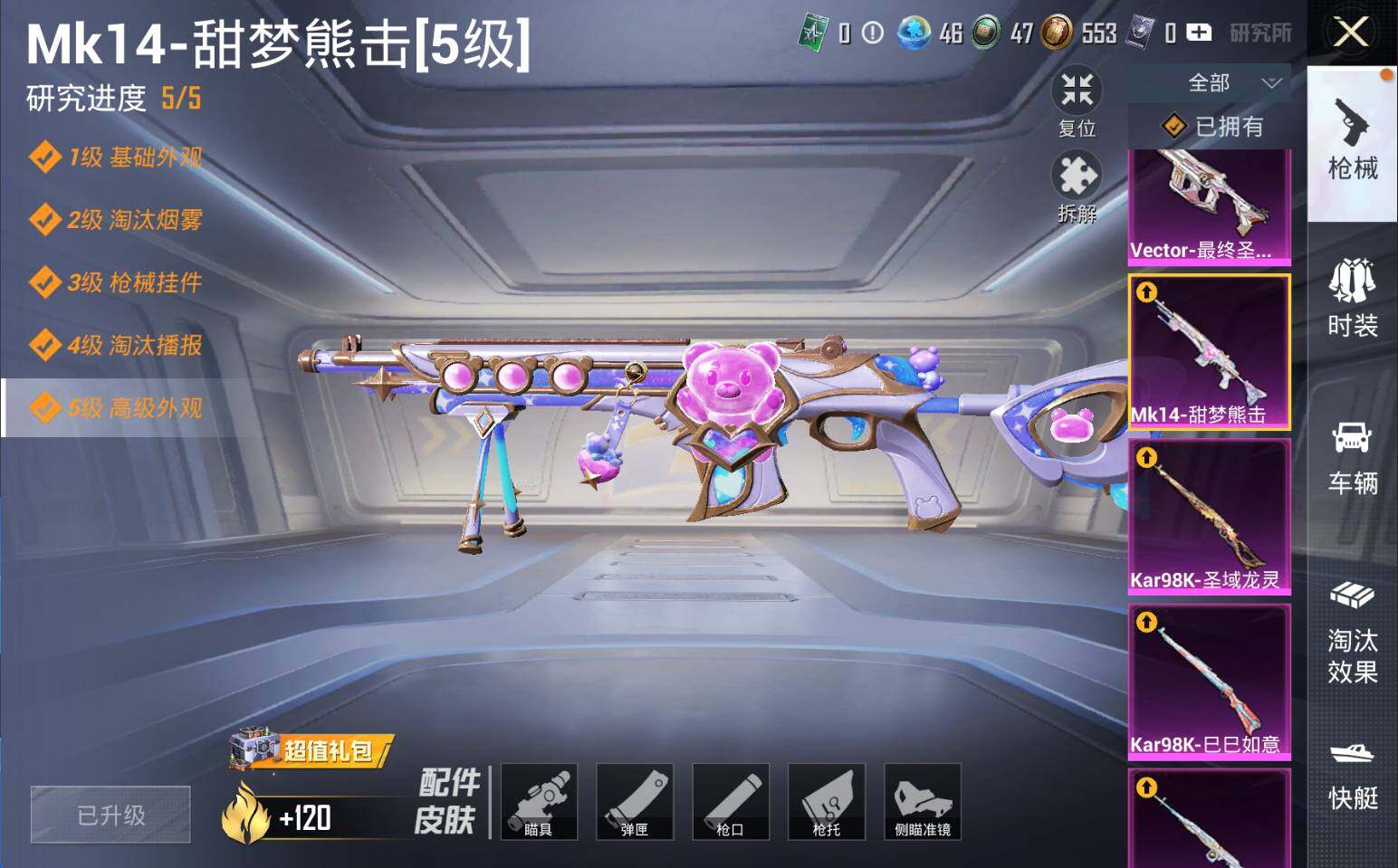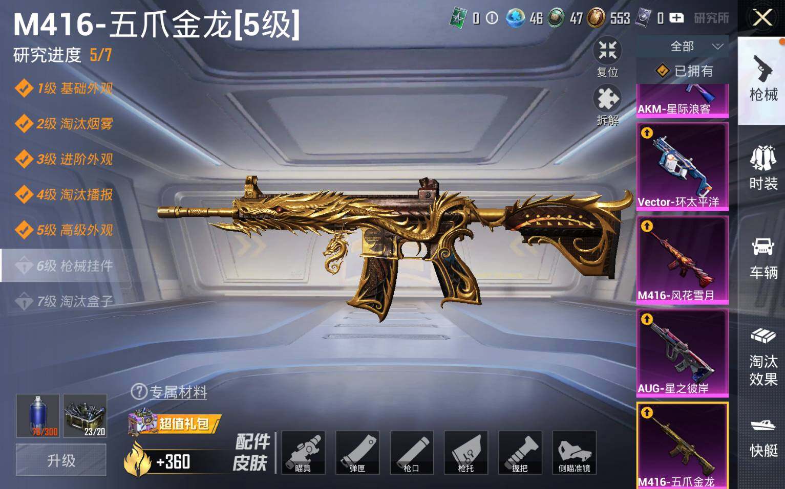 AKM-星际浪客,AKM-魔法神域,AKM-幽焰骑士,M416-五爪金龙,M416-风花雪月,M416-墨龙九天,GROZA-镜光银凌,AUG-星之彼岸,Vector-环太平洋,AKS-74U-信仰神谕,Kar98K-巳巳如意,Kar98K-圣域龙灵,SVD-月影灵韵
