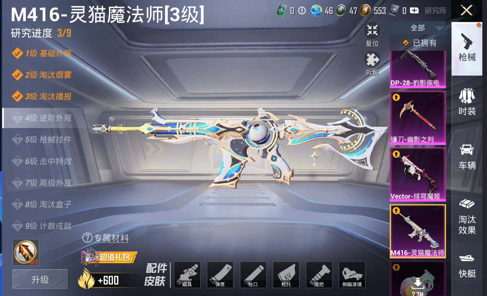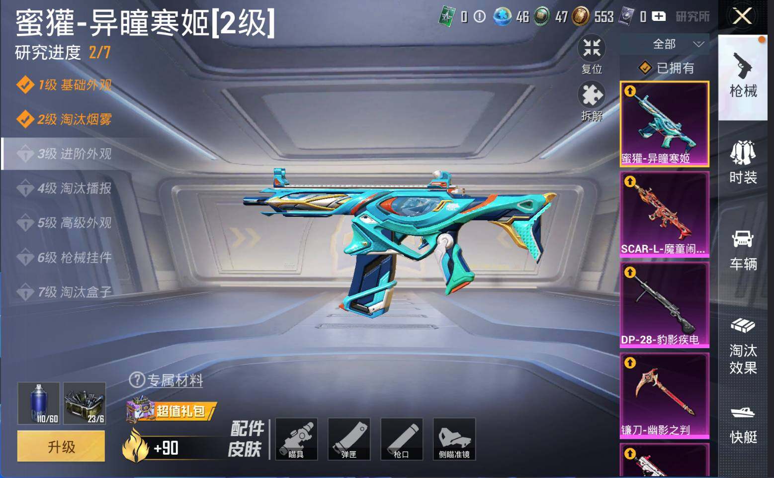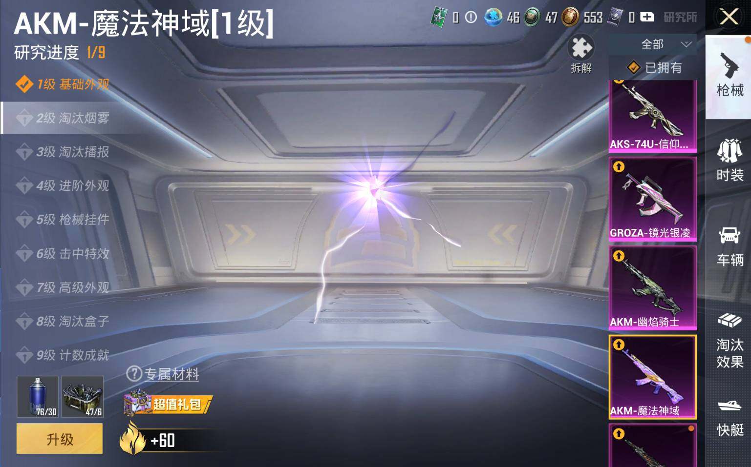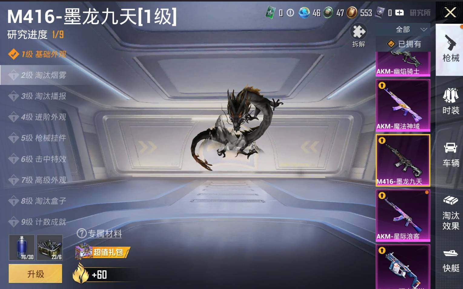 AKM-星际浪客,AKM-魔法神域,AKM-幽焰骑士,M416-五爪金龙,M416-风花雪月,M416-墨龙九天,GROZA-镜光银凌,AUG-星之彼岸,Vector-环太平洋,AKS-74U-信仰神谕,Kar98K-巳巳如意,Kar98K-圣域龙灵,SVD-月影灵韵