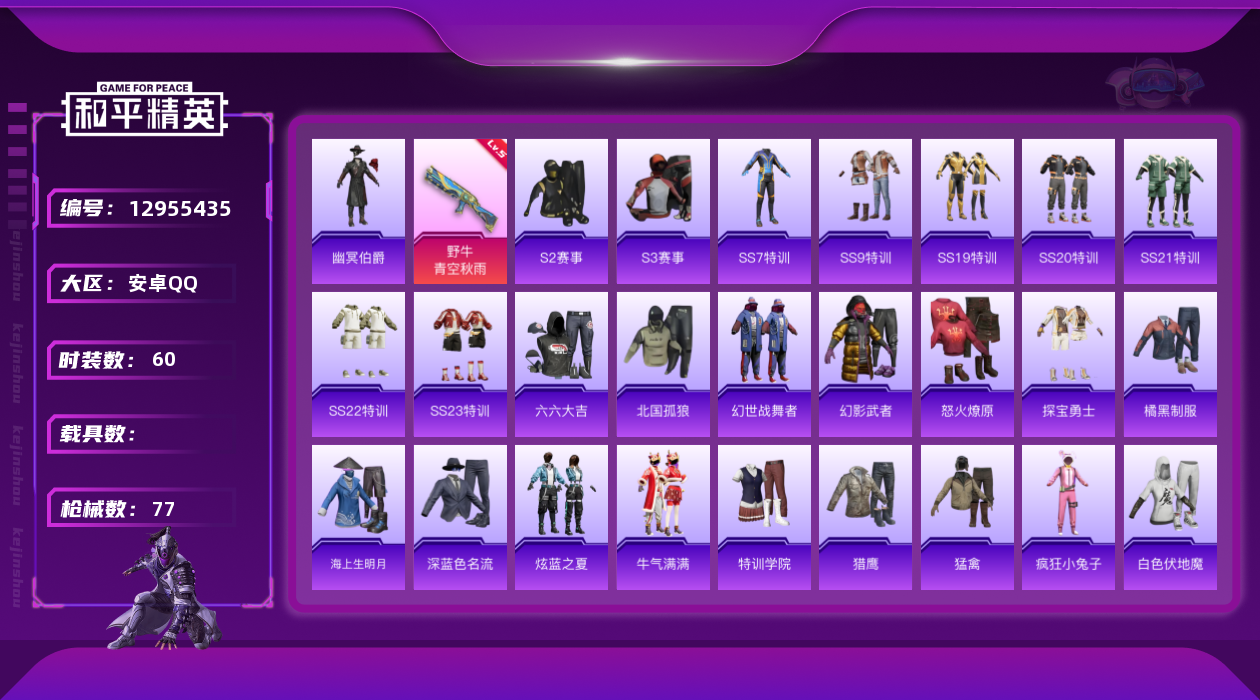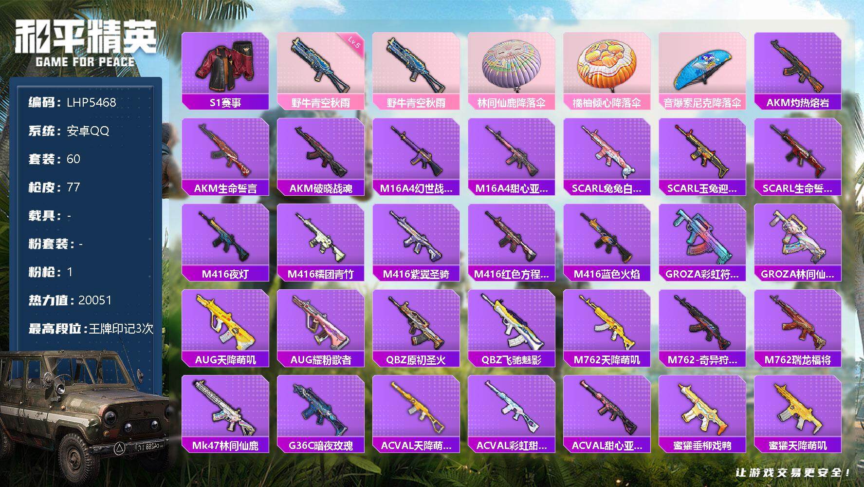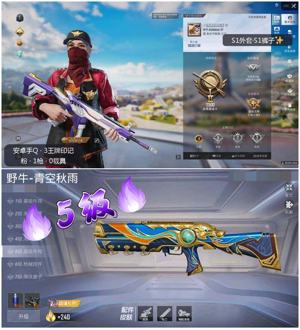 [12955435]地铁满天赋 安卓 手Q-1特效枪-2w热力值-3王牌印记-60套装-77枪皮【热门品类】:套装-S1赛事【粉色枪皮等级】:野牛-青空秋雨(五级)
