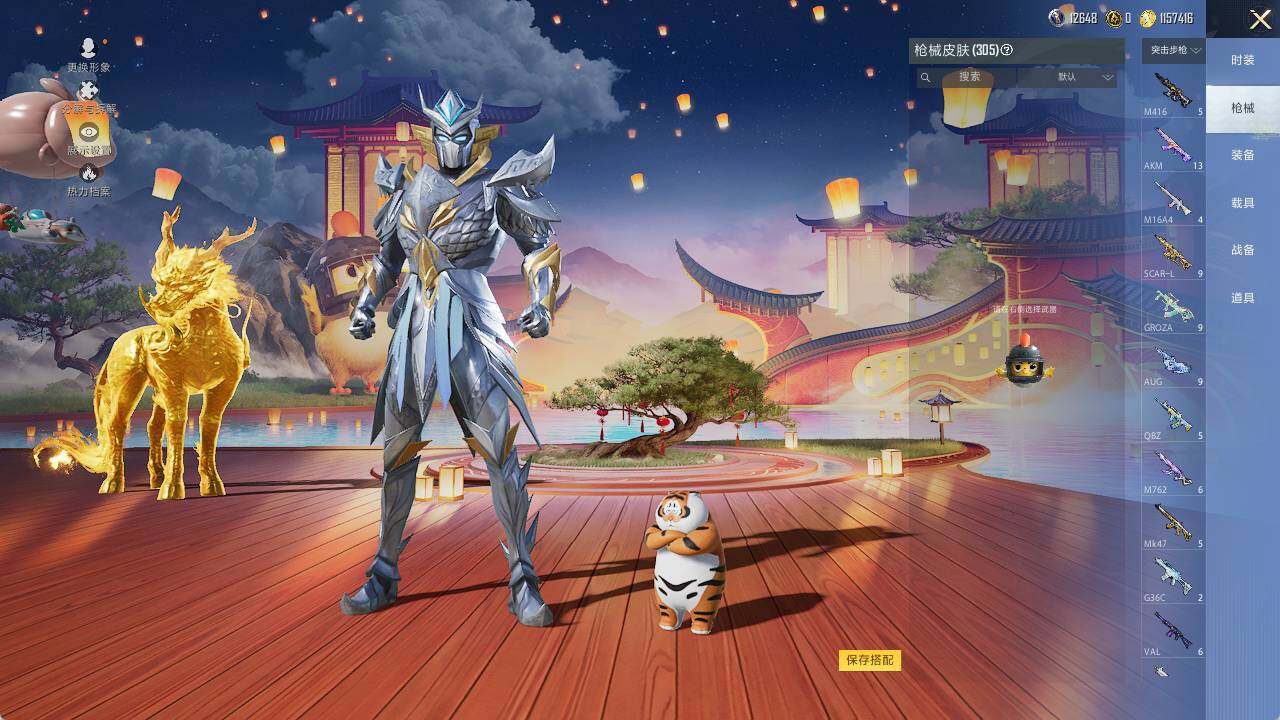 AKM-星际浪客,AKM-绿萝繁花,AKM-魔法神域,SCAR-L-童趣迷兔,SCAR-L-金蛇镇世,M416-心之恋语,M416-风花雪月,M416-墨龙九天,AUG-星梦奇缘,M762-电糖天使,UMP45-恐龙拽拽,UMP45-宇宙意志,P90-沙丘之主,Kar98K-巳巳如意,M24-镜域双华,DP-28-圣堂之誓,烟雾弹-猫咪绅士,破片手榴弹-秋玉花灯