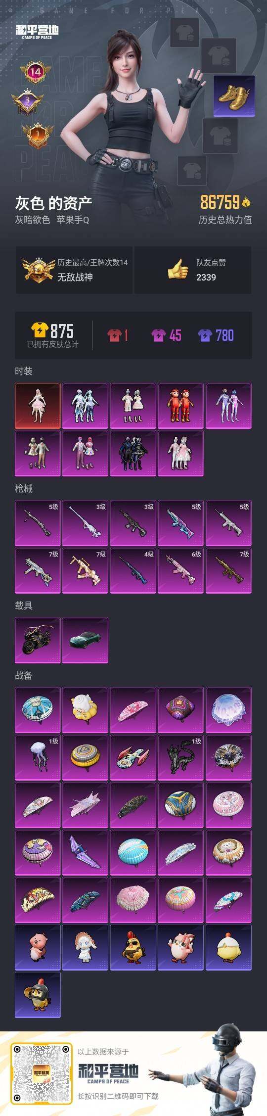 - PX_2022330- 可二次-苹果Q-130347热力值 13王牌印记 历史无敌战神 【极品身法全素材 SS22战神框 2级图卡 新老木乃伊 黄螳螂 雪国 小丑 都市 赤蝎 金鞋 黑丝 梦幻火箭 和服 未来战士 巧克力三姐妹 极限 幻影战神 放客 小白龙 花仙子 恶魔人蛛 追光服 战队服小丑鱼 金羽 暗夜行者 星际m4 7级至情至圣 】 287套装 305枪皮 【5载具】 迈凯伦570S天际蓝