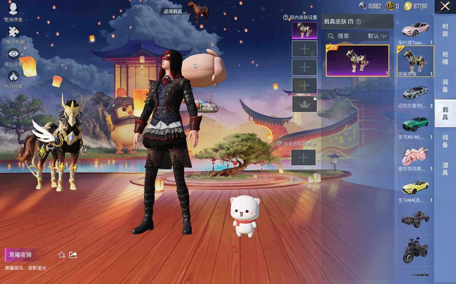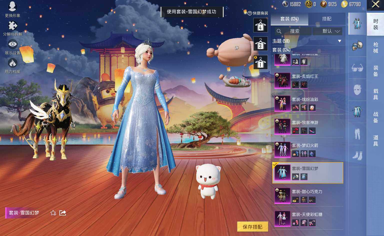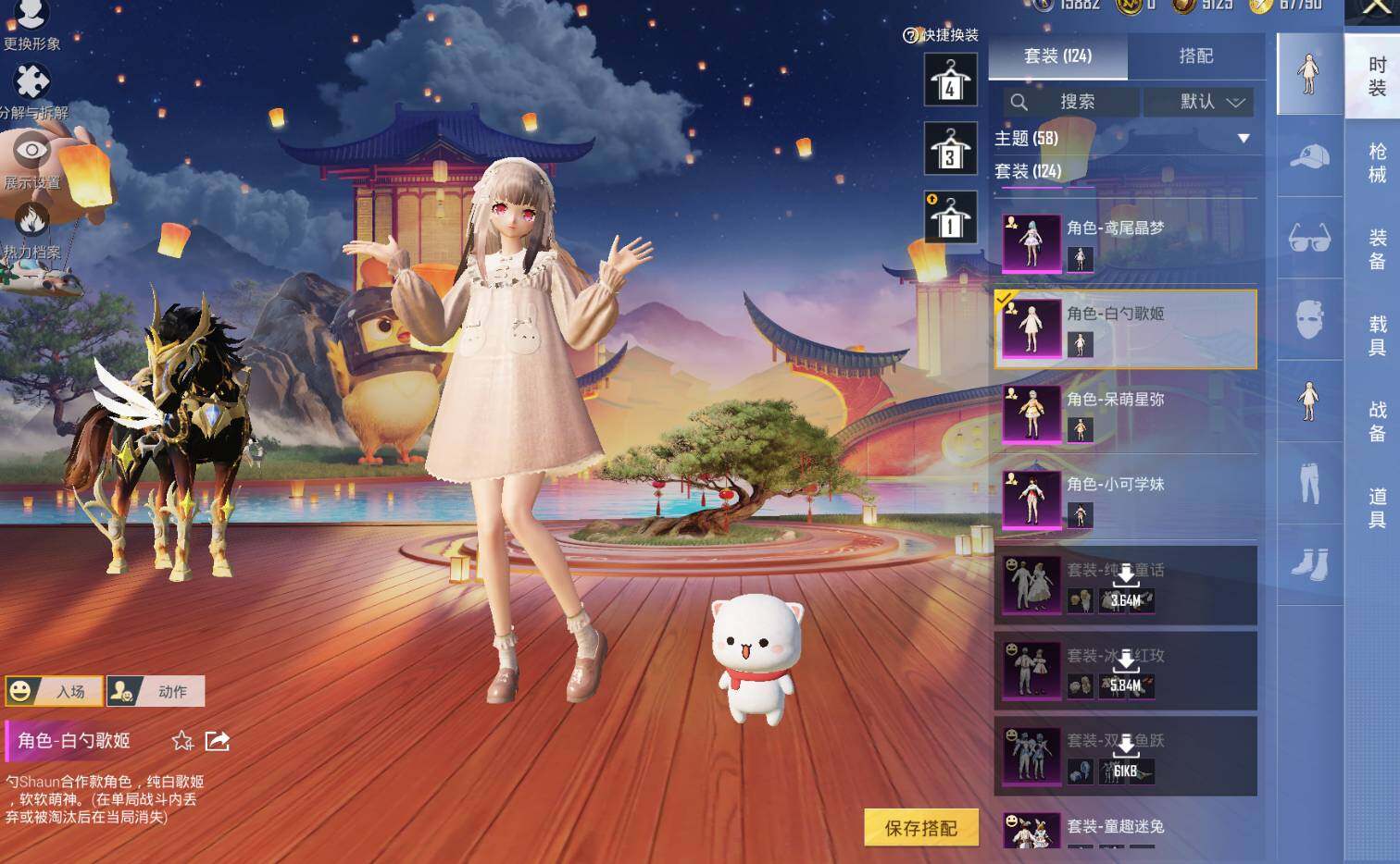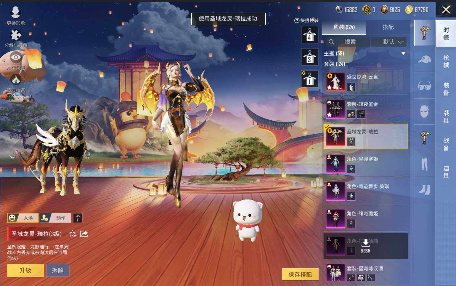 M416-女娲灵识,AUG-暖羊咩咩,Kar98K-巳巳如意,Kar98K-圣域龙灵,Mk14-盛世惊鸿,M417-第五大道