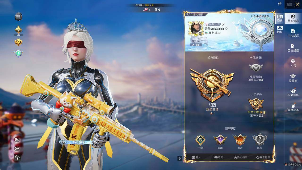- PX_2105609-实名: 可修改 贵族等级: V6 英雄数: 123 皮肤数: 185 星传说: 幽冥之眼 传说皮: 典韦战鼓燎原,幻光神枪 限定皮: 山海·玄木吟,影龙天霄,鸣野蒿,逐霄战戟