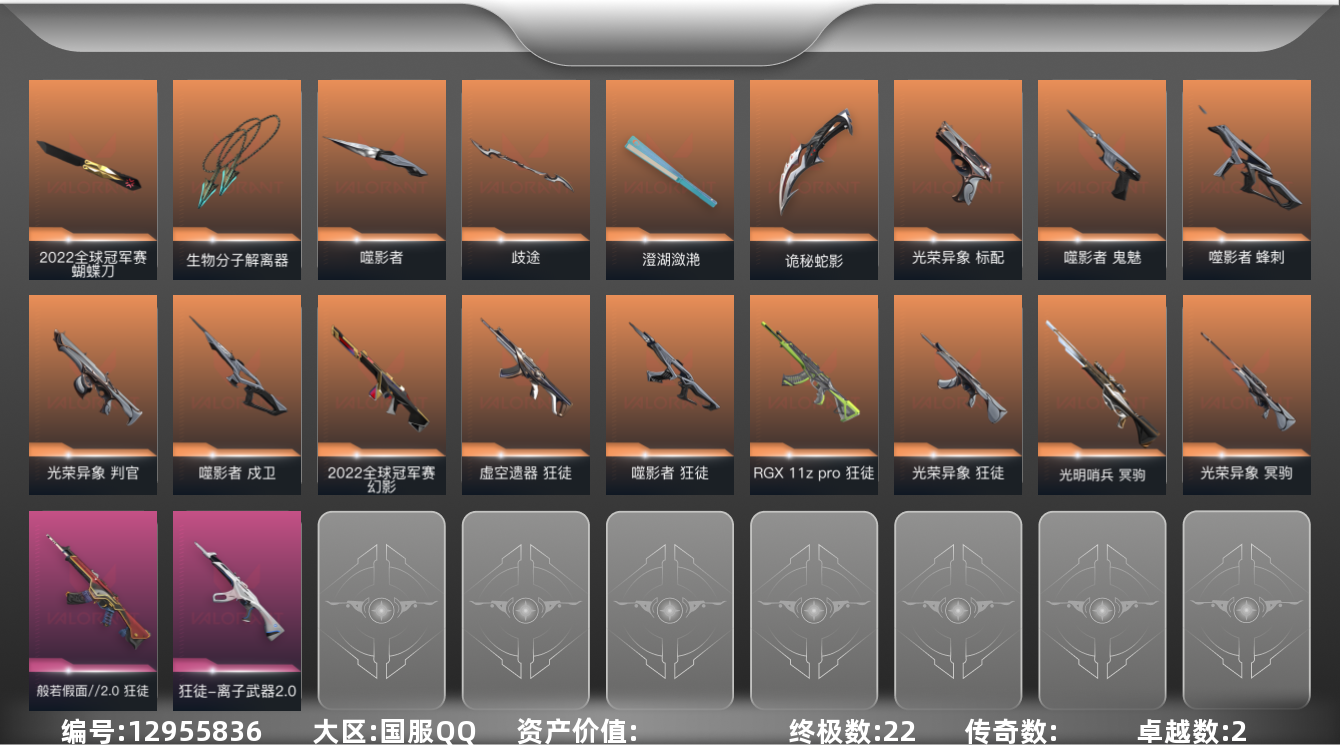 [12955836]皮肤资产价值43930 【套装】:2025全球冠军赛套装,2022全球冠军赛套装,光荣异象套装,噬影者套装