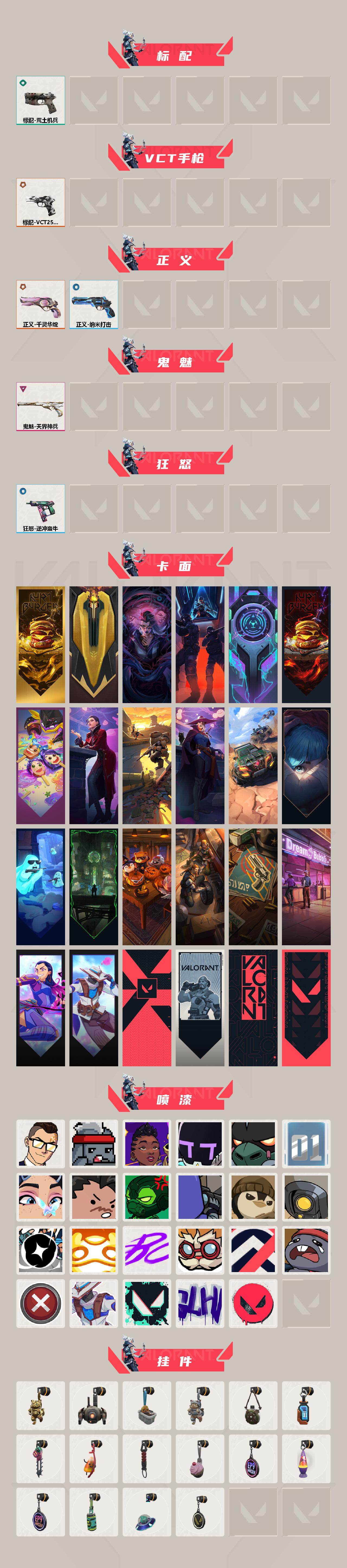 【喷漆】:小小心意 喷漆,战“素”兔 喷漆,宇宙的指引 喷漆,请求重启 喷漆,逆冲蛮牛 喷漆,纳米打击 喷漆,鼻尖上的蝴蝶 喷漆,简笔画黯兽 喷漆,独守蝰腹 喷漆,他们将落荒而逃 喷漆,通缉:战术企鹅 喷漆,荒土机兵 喷漆,别挡我吃球! 喷漆,嗨宝南瓜灯 喷漆,嘭! 喷漆,都算到了 喷漆,控场勿近 喷漆,熊抱 喷漆,买装还是存钱 喷漆,无畏契约GO!第一卷:零 喷漆,胜利属于无畏契约 喷漆,GLHF 喷漆,无畏契约 喷漆