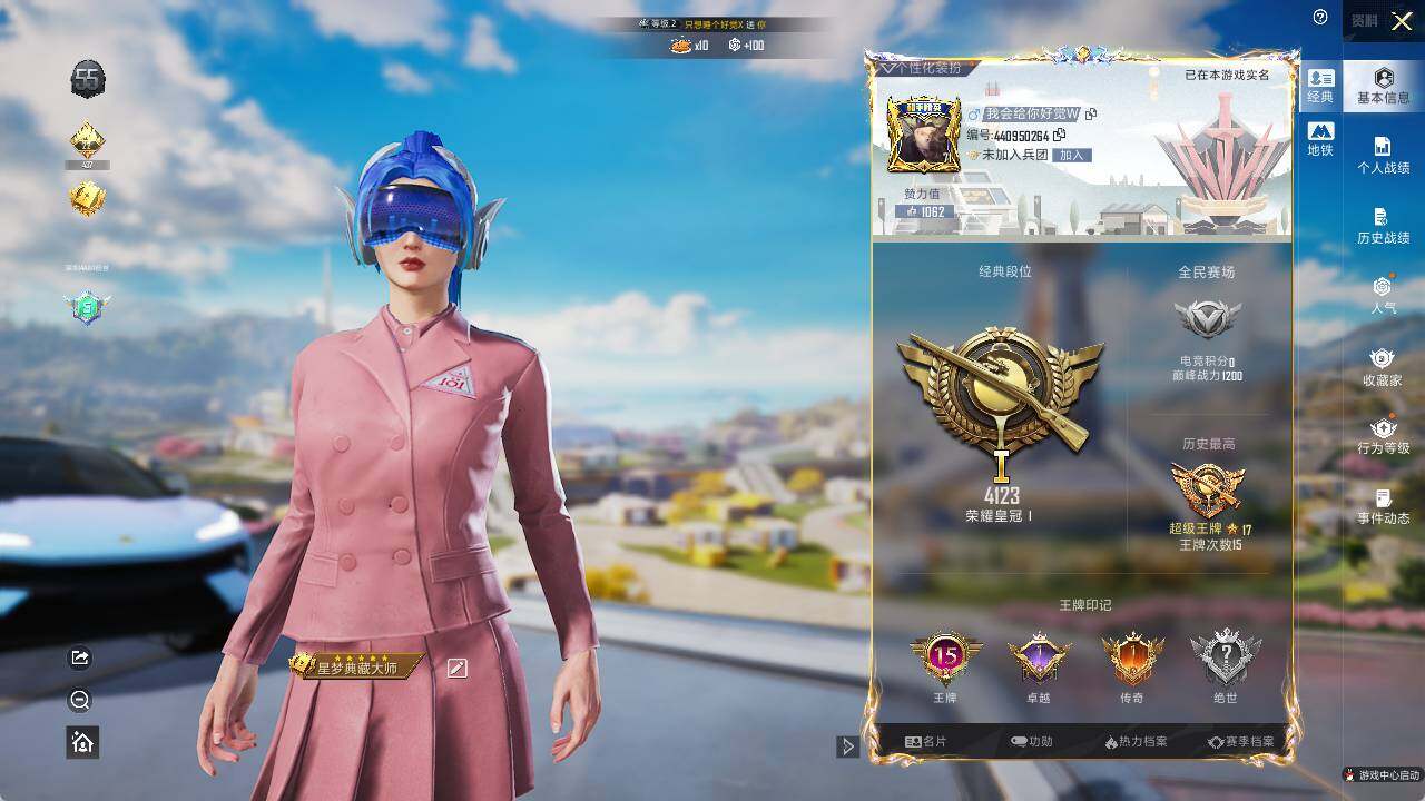 - PX_2106937-时装数: 179 枪械数: 58 战备数: 34 稀有枪皮:五级M416-电玩时刻,五级UMP45-量子极限,三级Kar98K-巳巳如意