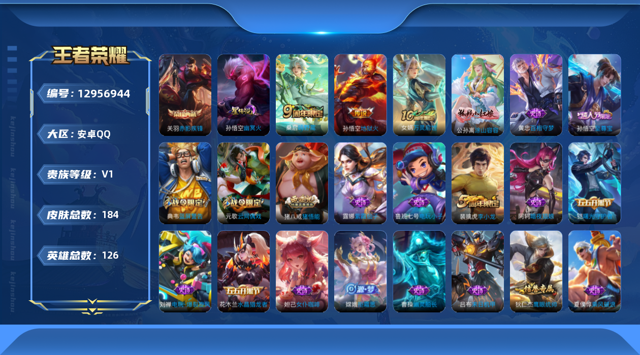 [12956944]安卓Q-V0-最强王者段位-126英雄-184皮肤-1典藏-2传说-51史诗