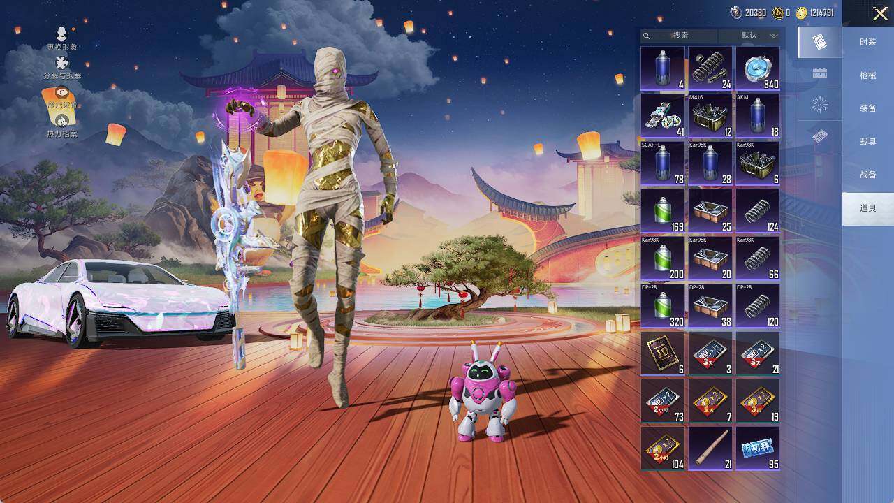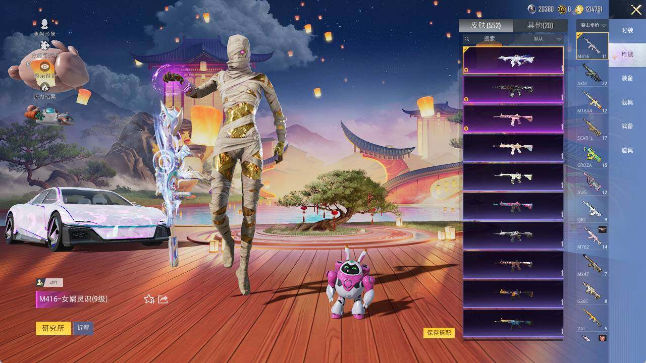 AKM-甜心宝贝,AKM-星际浪客,AKM-幽焰骑士,M16A4-垂柳戏鸭,SCAR-L-甜梦小狐,SCAR-L-金蛇镇世,M416-心之恋语,M416-墨龙九天,M416-女娲灵识,GROZA-香水柠檬,AUG-星之彼岸,AUG-超新星,P90-沙丘之主,Kar98K-巳巳如意,Kar98K-圣域龙灵,M24-莲影清波,M24-镜域双华,M417-第五大道,DP-28-千金淑猫,爆炸猎弓-拳皇·狂花道,平底锅-林间仙鹿,平底锅-仲夏莫吉托,烟雾弹-猫咪绅士,破片手榴弹-粉粉猫爪