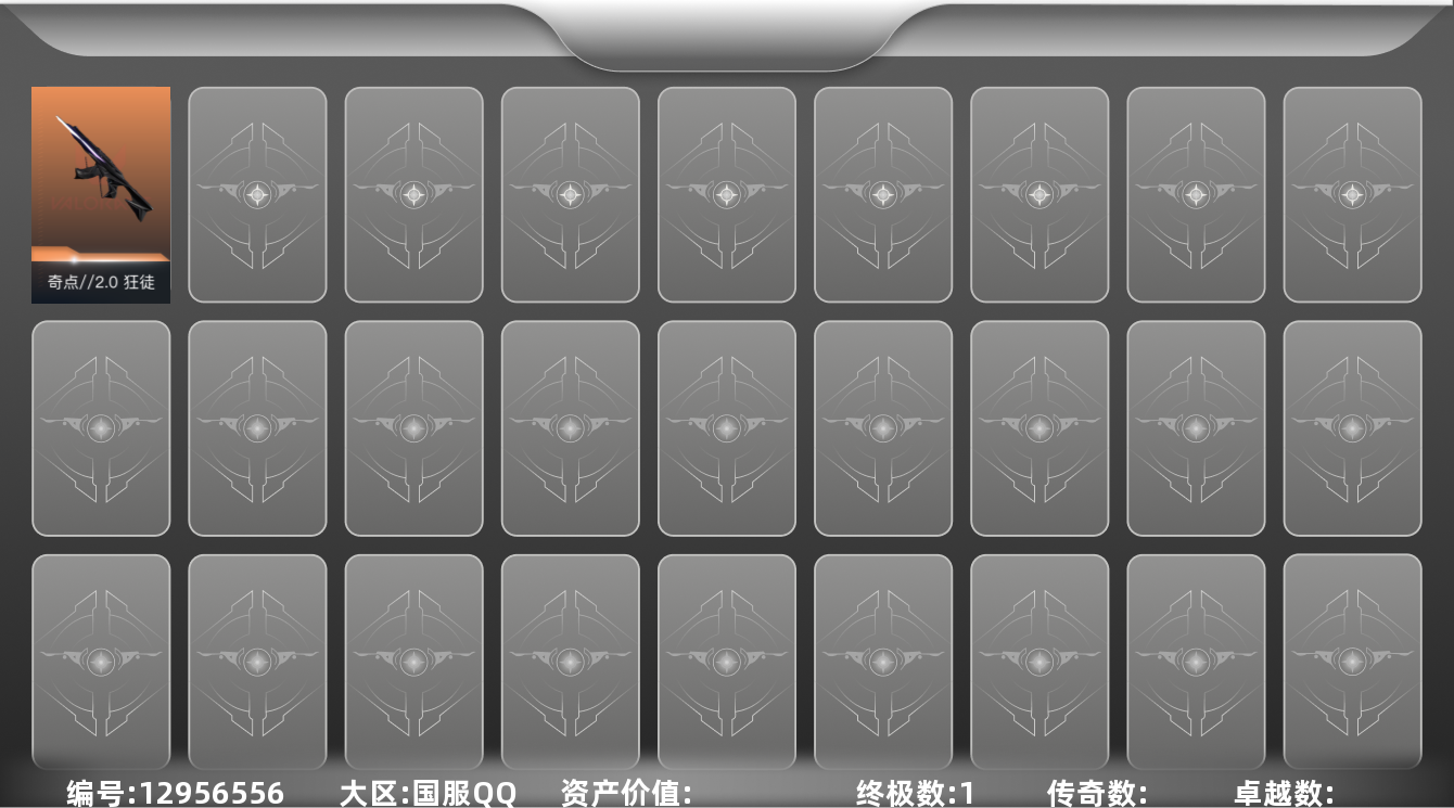 [12956556]【英雄】:幻棱,炼狱,暮蝶,捷风,不死鸟,贤者,猎枭,芮娜,尚勃勒 【狂徒】:狂徒-奇点//2.0 【卡面】:无畏契约GO!第一卷:零 卡面,代号红色 卡面,新兵报到 卡面,V契约 卡面,无畏契约 卡面 【喷漆】:胜利属于无畏契约 喷漆,GLHF 喷漆,无畏契约 喷漆 【挂饰】:无畏契约 纪念币 挂饰