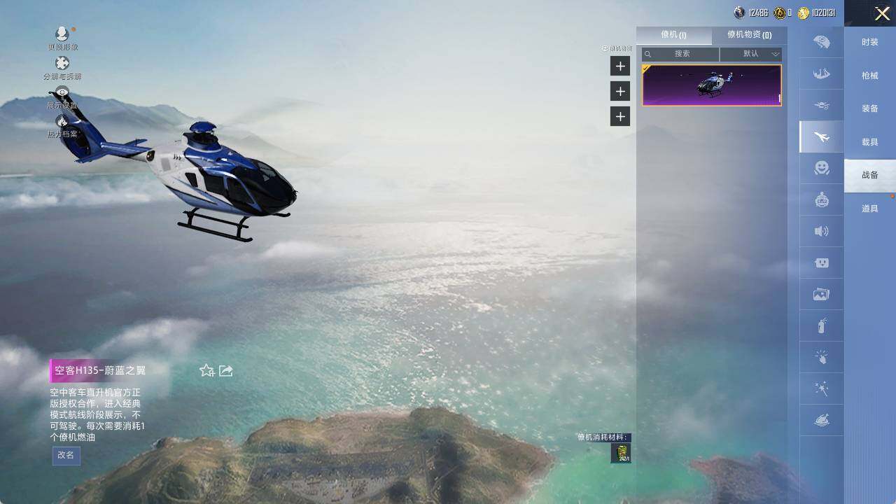 路特斯ELETRE(冰川蓝),宾利欧陆GT敞篷(火焰橘),仰望U9(赤霞丹朱),星河领航(磐石银),空客H135-蔚蓝之翼,护世瑞兽,Formula_E_Gen2(幽光蓝),玛莎拉蒂Ghibli(蓝)