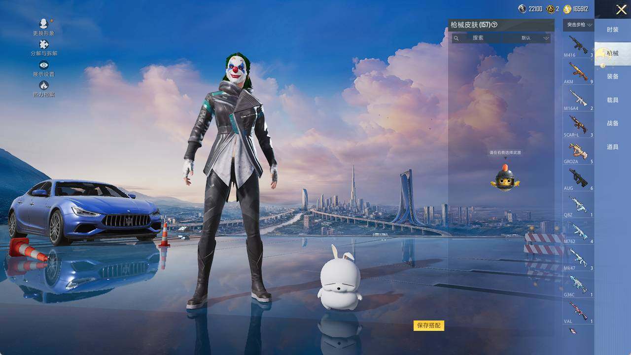 AKM-甜心宝贝,AKM-星际浪客,SCAR-L-天蓬元帅,M416-风花雪月,M416-至情至圣,GROZA-焦糖拿铁,AUG-星之彼岸,AUG-星梦奇缘,M762-冷魅冰骑,Vector-飒粉甜心,野牛-青空秋雨,P90-能量风暴,Kar98K-未来歌姬,M24-莲影清波,SPAS-12-音爆索尼克,DP-28-暗夜鎏金,MG3-洛神天依