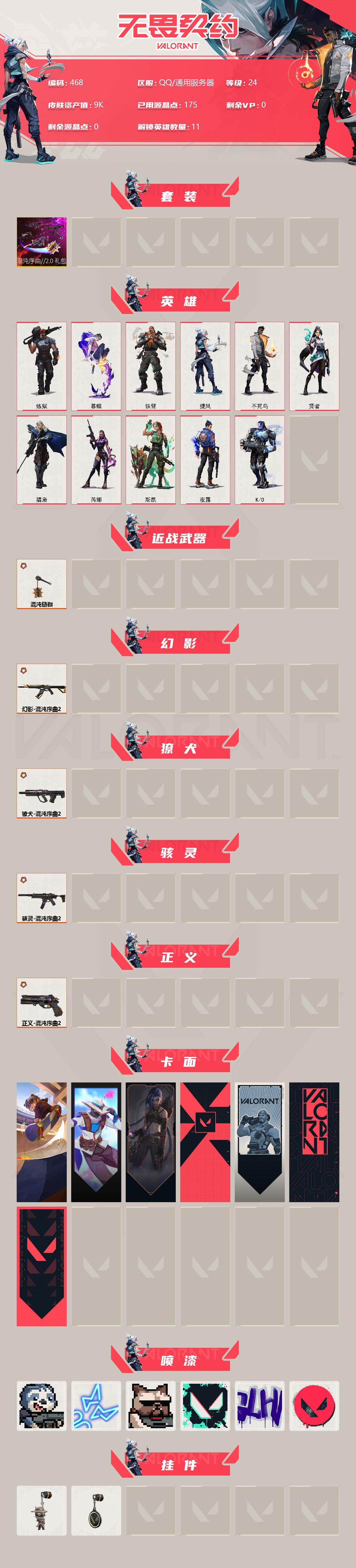[12958049]【套装】:混沌序曲//2.0套装 【英雄】:炼狱,暮蝶,铁臂,捷风,不死鸟,贤者,猎枭,芮娜,斯凯,夜露,K/O 【近战 武器】:近战武器-混沌链枷 【幻影】:幻影-混沌序曲//2.0 【獠犬】:獠犬-混沌序曲//2.0 【骇灵】:骇灵-混沌序曲//2.0 【正义】:正义-混沌序曲//2.0 【卡面】:Clutch 卡面,无畏契约GO!第一卷:零 卡面,《双城之战》金克丝 卡面,代号红色 卡面,新兵报到 卡面,V契约 卡面,无畏契约 卡面 【喷漆】:审判之爪 喷漆,霓光四射 喷漆,关门放狗 喷漆,胜利属于无畏契约 喷漆,GLHF 喷漆,无畏契约 喷漆 【挂饰】:无畏契约GO!第一卷 零 挂饰,无畏契约 纪念币 挂饰