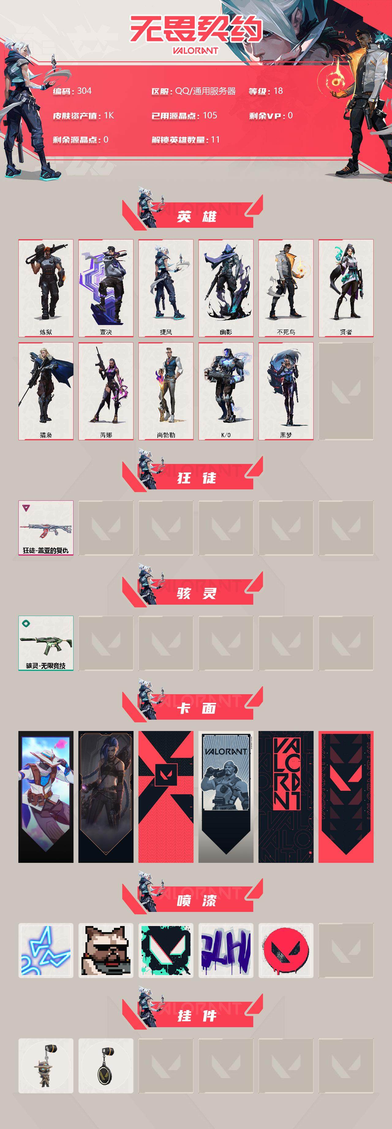 [12956712]【英雄】:炼狱,壹决,捷风,幽影,不死鸟,贤者,猎枭,芮娜,尚勃勒,K/O,黑梦 【狂徒】:狂徒-盖亚的复仇 【骇灵】:骇灵-无限竞技 【卡面】:无畏契约GO!第一卷:零 卡面,《双城之战》金克丝 卡面,代号红色 卡面,新兵报到 卡面,V契约 卡面,无畏契约 卡面 【喷漆】:霓光四射 喷漆,关门放狗 喷漆,胜利属于无畏契约 喷漆,GLHF 喷漆,无畏契约 喷漆 【挂饰】:无畏契约GO!第一卷 零 挂饰,无畏契约 纪念币 挂饰