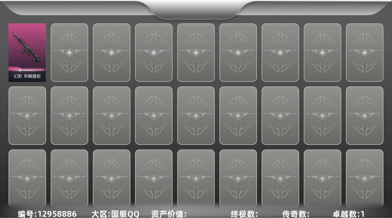 - [11250299]可二次 可修改实名 实名:可修改 高级安全箱(2×3)9.15号到期 烽火地带段位:钻石 全面战场段位:尉官 总资产:30 哈夫币:1.769 传说武器皮肤:SCAR-H战斗步枪-水墨云图,SR-25射手步枪-水墨云图,AK-12突击步枪-夜鹰,SMG45冲锋枪-骑士,复合弓-黑-天际线,CAR-15突击步枪-阿米娅,725双管霰弹枪-送葬人-无题密令,M4A1突击步枪-蚀金玫瑰 干员外观:红狼-蚀金玫瑰,骇爪-水墨云图
