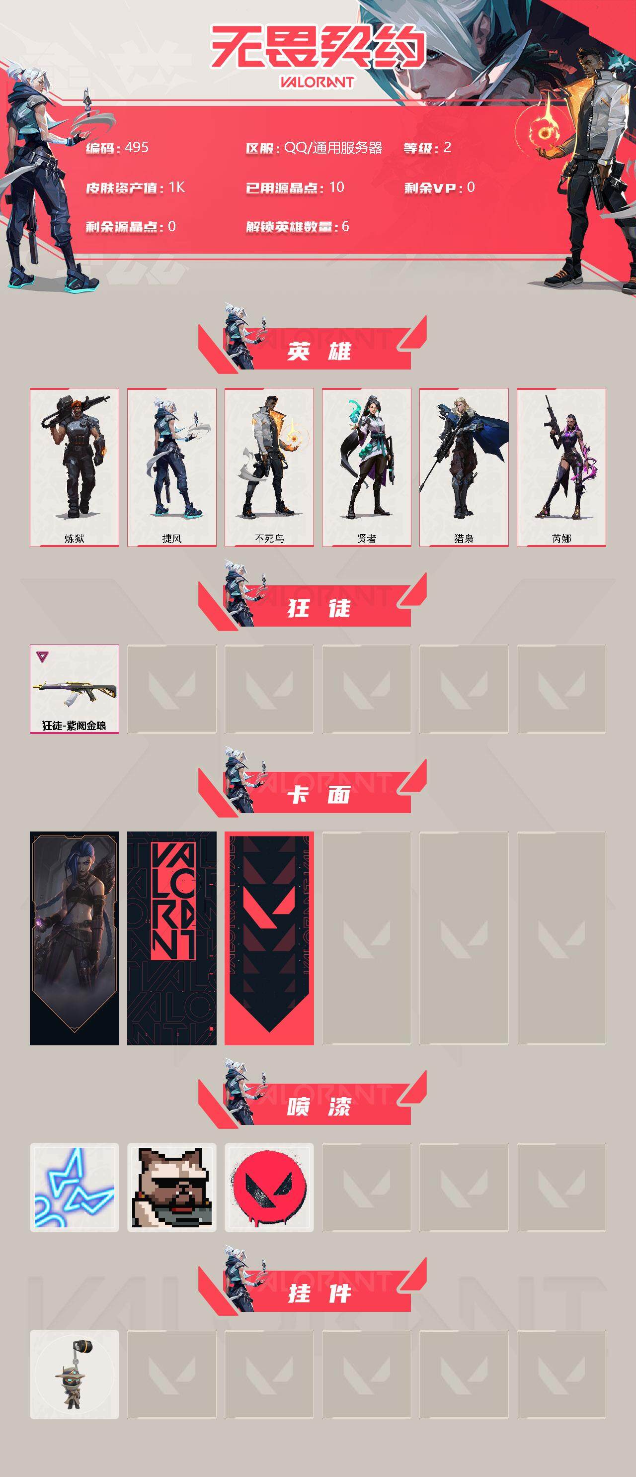 [12958212]【英雄】:炼狱,捷风,不死鸟,贤者,猎枭,芮娜 【狂徒】:狂徒-紫阙金琅 【卡面】:《双城之战》金克丝 卡面,V契约 卡面,无畏契约 卡面 【喷漆】:霓光四射 喷漆,关门放狗 喷漆,无畏契约 喷漆 【挂饰】:无畏契约GO!第一卷 零 挂饰