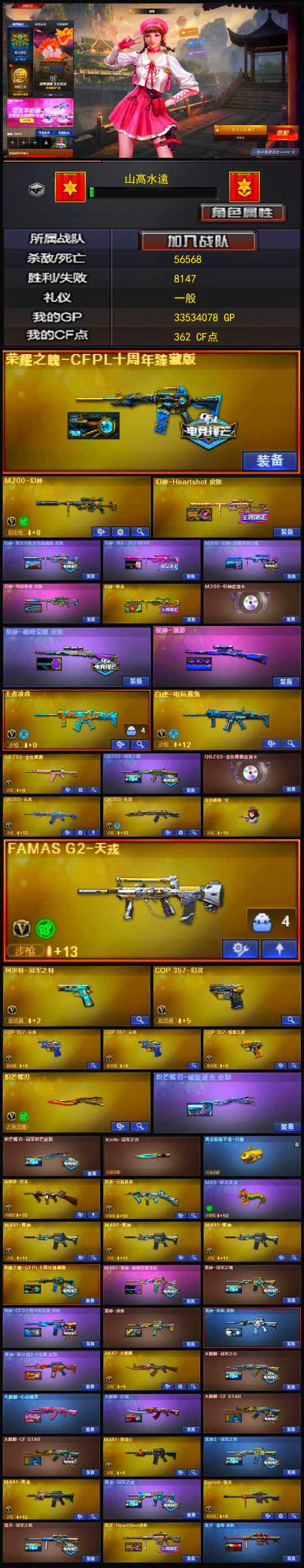 【稀有皮肤】:幻神-宠儿-2021MVP,幻神-降龙,M200-幻神-荣耀世冠白鲨,幻神-电流骇客 皮肤,幻神-Heartshot 皮肤,幻神-星火小队签名臻藏版 皮肤,星神-漫游,星神-巅峰荣耀 皮肤,QBZ03-冠军之薇,雷神-虎将,雷神-冠军之魄,火麒麟-冠军之心,火麒麟-百城,火麒麟-心动糖果,黑骑士-冠军之势,黑龙-冠军之武,毁灭-冠军之怒,荣耀之魄-CFPL十周年臻藏版,无影-霓裳皮肤,修罗-冠军之魂,炽芒蝶刃-破浪逐光 皮肤,炽芒蝶刃-冠军炽芒皮肤,屠龙-荣耀之锋,屠龙-星火燎原