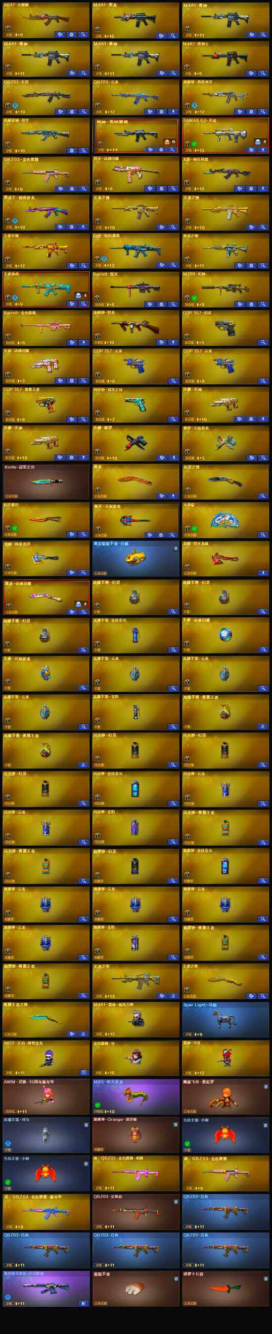【热门武器】:QBZ03-金色蔷薇,M200-幻神,青龙之魄,白虎-电玩蓝兔,柯尔特-冠军之特,M4A1-黑骑士,汤姆逊-烈龙,金色蔷薇-空,MK5-炽火炎龙,雷神-小红,COP 357-幻灵,沙鹰-修罗,Knife-冠军之刃,炽芒蝶刃,炽芒蝶刃-破浪逐光 皮肤,炽芒蝶刃-冠军炽芒皮肤,黄金猫猫手套-白鲨
