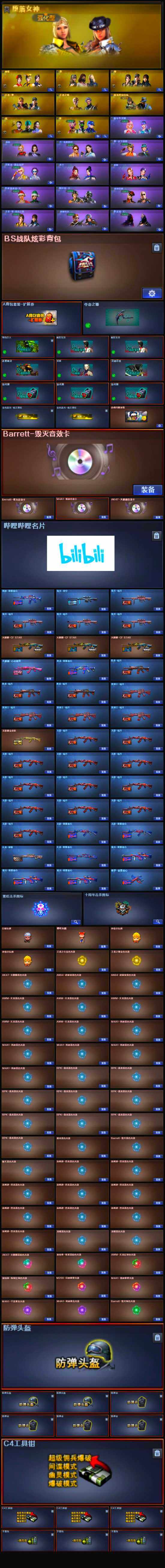 【音效卡】:AK47-火麒麟音效卡,M4A1-雷神音效卡,Barrett-毁灭音效卡,Barrett-极光音效卡