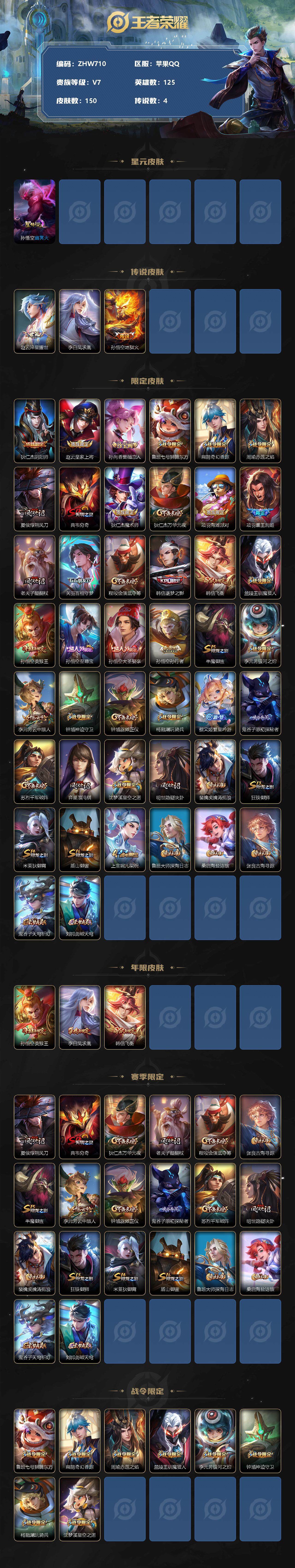 [12977141]苹果Q-V7-永恒钻石V段位-125英雄-150皮肤-1星元-4传说-36史诗