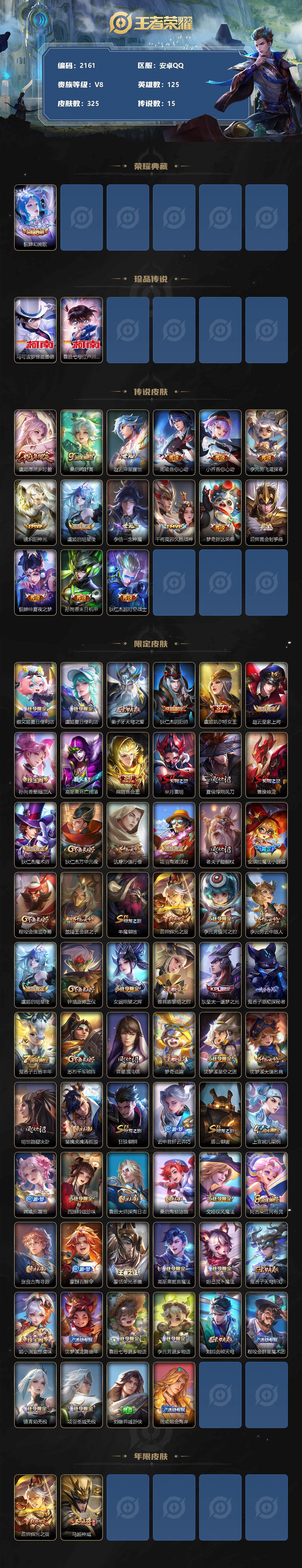 [13009300]安卓Q-V8-至尊星耀IV段位-125英雄-325皮肤-1典藏-0珍品无双-0无双-2珍品传说-15传说-87史诗