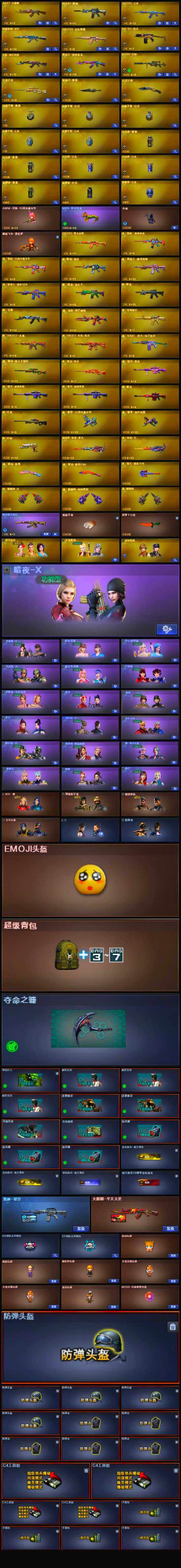 【英雄级武器】:AK47-火麒麟,M4A1-雷神,无影-神兵利器,QBZ03-云龙,黑武士-锦绣游龙,QBZ03-金色蔷薇,M200-幻神,幻灵之锋,斩神刀-雷暴