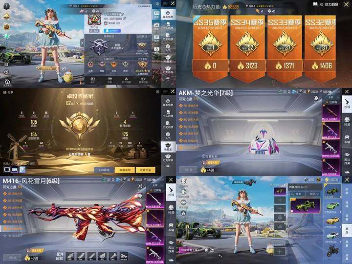 AKM-炫紫旋律,AKM-梦之光华,M416-风花雪月,UMP45-相思残雪,Kar98K-巳巳如意,M24-莲影清波