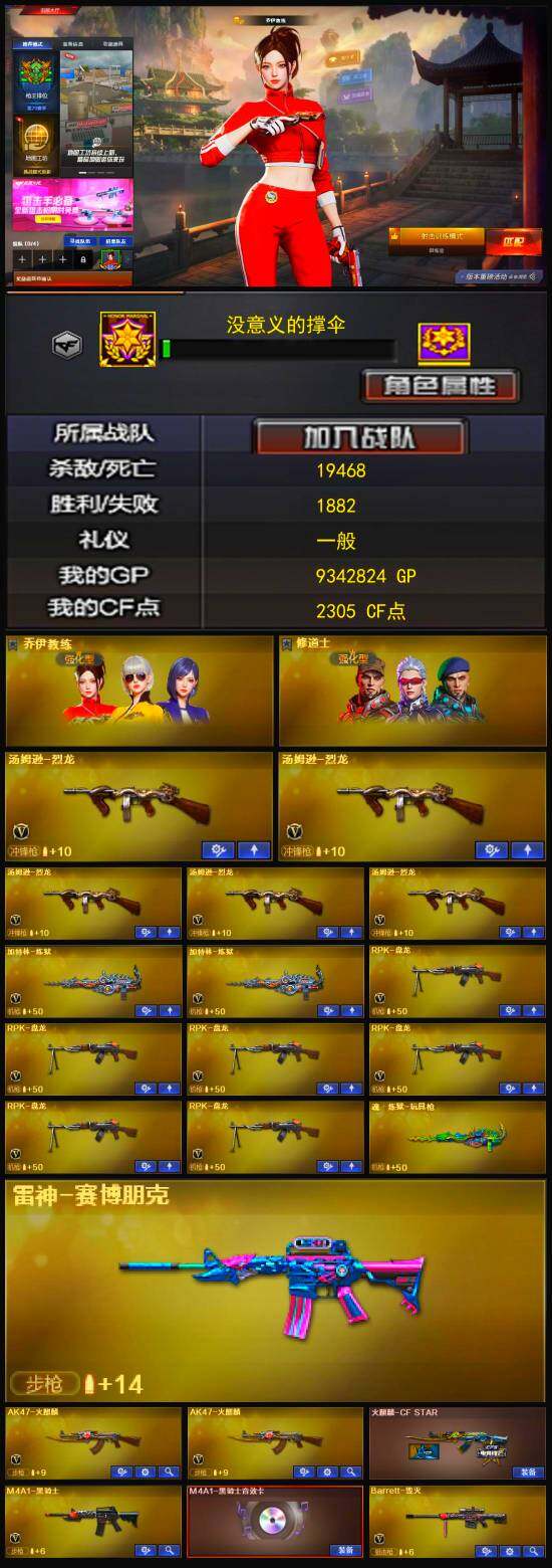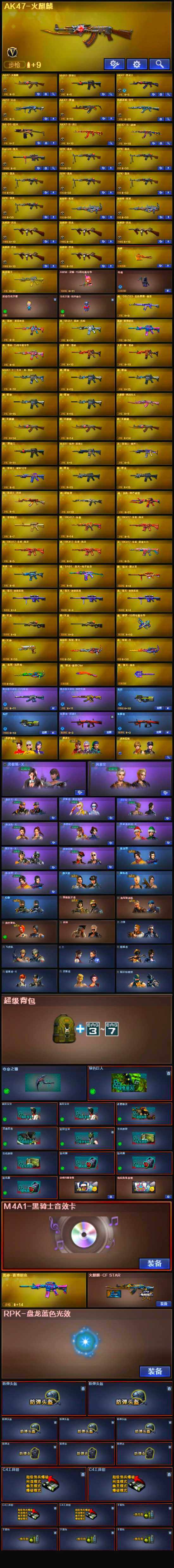 【英雄级武器】:AK47-火麒麟*2,M4A1-黑骑士,AK47-黑武士,AK12-天启,AK47-黑鲨,AK-47-猩红传说*5,AK47-B-战神,Barrett-毁灭,RPK-盘龙*6,加特林-炼狱*2,汤姆逊-烈龙*5,龙啸