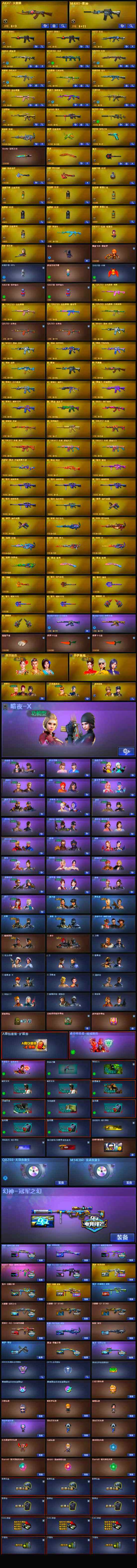 【英雄级武器】:AK47-火麒麟,M4A1-雷神,M4A1-黑骑士*2,AK12-天启,AN94-超新星,M14EBR-玄武,QBZ03-天罚,黑武士-锦绣游龙,超新星-热带奇洋,金色蔷薇-古蛇迷踪,QBZ03-金色蔷薇,Barrett-毁灭,M200-幻神,加特林-炼狱,修罗-古蛇迷踪,柯尔特-冠军之特,屠龙,擎天,龙啸-热带奇洋,M4A1-赤狱骑士,AWM-昌龙