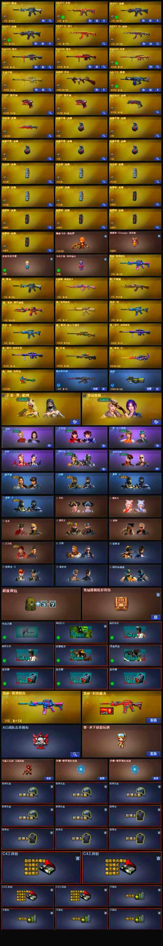 - [11687523]3粉装 5特效枪 12印记 可二次 可修改实名 优质装备:M16A4垂柳戏鸭,SCAR-L-锦绣绵绵,M416电玩时刻,Kar98K-巳巳如意 热门装扮:朗月武圣,未来歌姬,创世·救赎,鹰眼刺客,梦魇先生 稀有枪皮:DP-28-豹影疾电 五级特效枪:五级Kar98K-巳巳如意,五级DP-28-豹影疾电,五级M416-电玩时刻,五级SCAR-L-锦绣绵绵,五级M16A4-垂柳戏鸭 紫色装扮:田园牧歌,轻风白浪,SS22特训,SS23特训,幻彩翩翩,妙红点点,龙舌兰冰茶,白兰地假日,娇憨猪猪,萌趣咩咩,SS21特训,浪漫假日,SS31特训套装,云霄猎人,人气偶像,军械专家,冰川特警,冷焰舞者,旭日情侣,SS33特训套装,顶瓜瓜,SS20特训,猎梦纪元,SS19特训,甜心亚梦,虚音幻奏,SS18特训,都市魅力,酒红色名流,野性战心,长空猛禽,雨林探路者,雪山征服者,霓虹街区,霸义无双,青年教官,青春校园,风暴特警,缤纷果语,苍穹猎鹰,荣耀,蓝彩潮人,蓝色运动,血色贵族,街头潮人,超能勇士,绛羽幽主,飞行日记,龙腾端午,魅力单车,鹤鸣,麻辣教官,黄色伏地魔,黄色名流,黄色运动,黑色伏地魔,龙的传人,龟仙人,冰河战士,蝶变,香桃花海,沙漠毒蛇,极地朋克,极速红龙,柠萌假日,橘黑制服,沙漠兵团,活力之心,派对绅士,海岛探路者,涂山之恋,深蓝色名流,清新柠檬,幻影武者,坚韧舞者,完美偶像,帅气教官,幻世战舞者,战地督导,探宝勇士,湖蓝色名流,绮丽涂鸦,甜蜜菠萝,白熊同盟,白色伏地魔,破晓战魂,破蛋小黄鸡,甜蜜告白,空岛之星,空投萌叽,竞技达人朋克,红色运动,王牌教练,牛气冲天,灰色格斗者,灼焰舞者,炫蓝之夏,热血骑手,燃烧卡路里,牛气满满,猛禽,特战英豪,特殊使命,特训学院,猎鹰,SS29特训,拉斐尔,星途旅人,创世·幻影,纯真浪花,热情海星,SS28特训,卖崽青蛙,创世·追猎,冰公主,红潮炫舞,鱼渊荷华,玉兔迎春,燕燕于飞,竞技名士,许七安,情公主,惊鸿侠骨,甜梦熊熊,神气柴柴,懵萌河马,SS24特训(SS24特训套装),SS25特训,绝对偶像,锦衣飞扬,粉红小猪,焰鹰斗篷,幻羽潜行,SS27特训,SS26特训,春光漫游,快闪甜心,贝斯之夜,智谋强哥,精神漫游,格斗专家,核芯基因,大橘大利,耀粉歌者,SS32特训服(SS32特训套装),青玉碎影,绯格组合,萌黄之夏,白糯汤圆,恋
