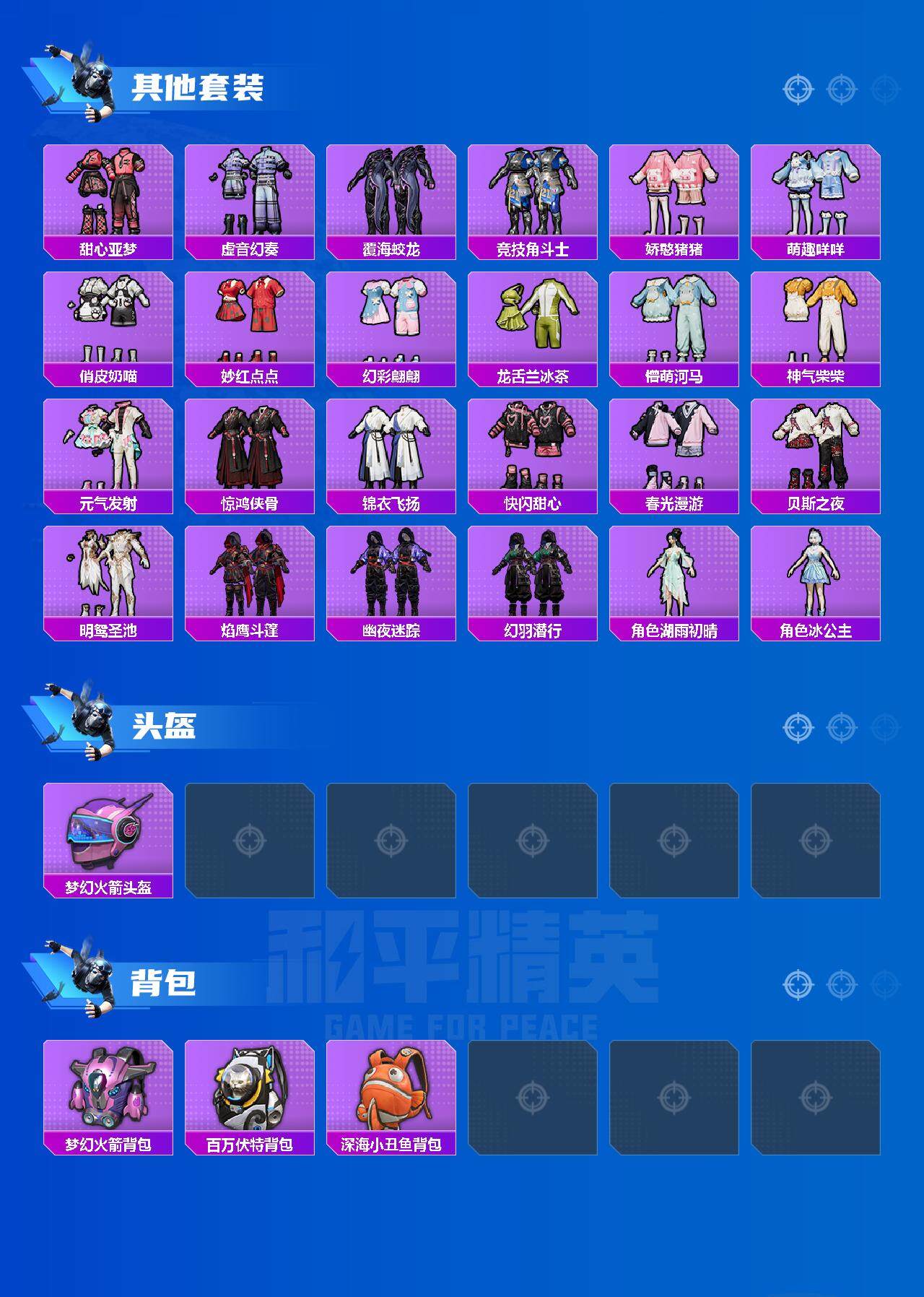 套装-龟仙人,套装-暗影哥特,角色-英勇保护者,套装-弄潮海豚,套装-雪山精英