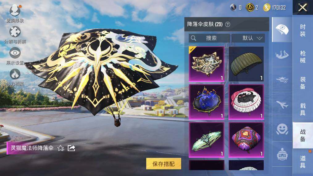 【粉色降落伞】:流星咚咚降落伞,初号机 觉醒Ver.降落伞,幽焰骑士降落伞,鬼刀降落伞,灵猫魔法师降落伞,绯穹魔姬降落伞