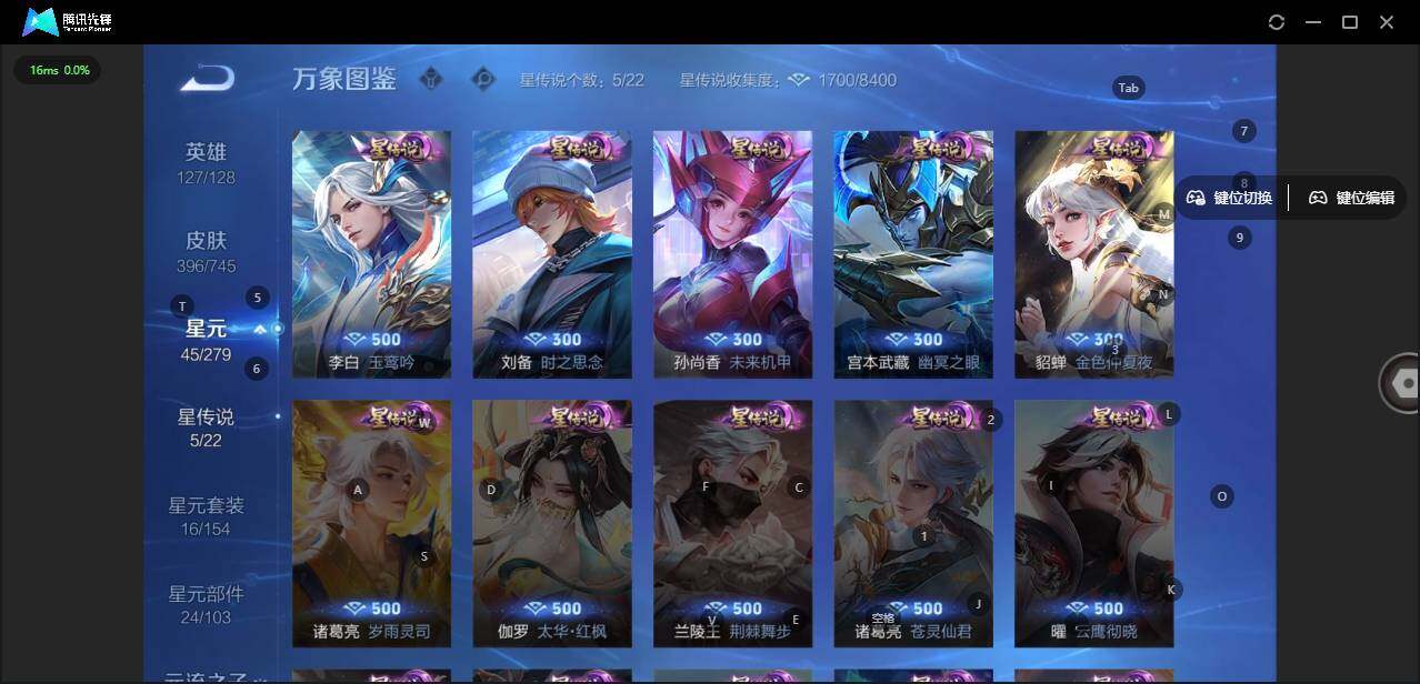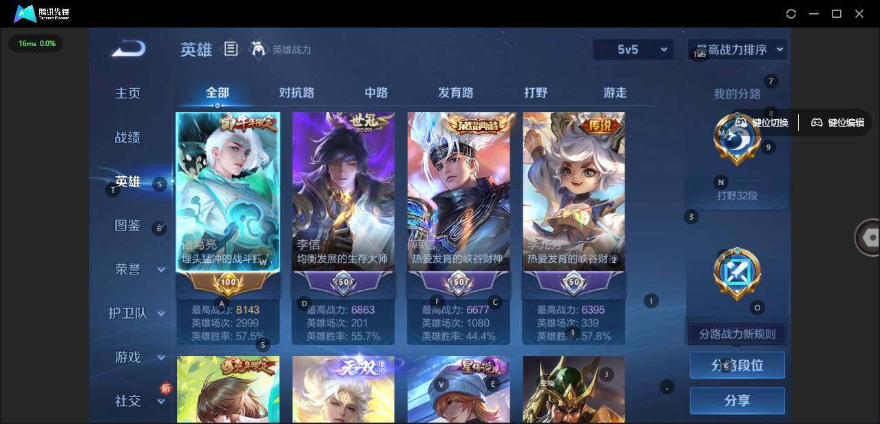 - [12147595]V5 5传说 91英雄 59皮肤 可修改实名 优质装备:无双飞将 传说皮:幻光神枪 限定皮:愿照·九州拓(澜年限),愿照·山河定(司空震年限),鸣野蒿 史诗皮:蔬乡物语(鲁班七号),紫霞仙子,黄金分割率,无限星赏官,晚萤,女仆咖啡,摇滚巨星,水果甜心,功夫厨神,暗隐猎兽者,鬼剑武藏,心灵战警,水晶猎龙者,圣诞恋歌,魅力维加斯