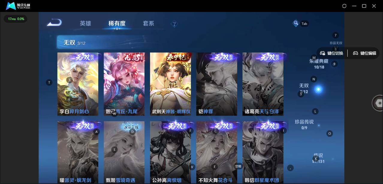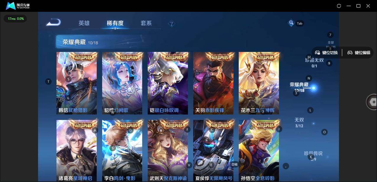 【荣耀典藏】:武则天英雄,孙悟空全息碎影,武则天倪克斯神谕,夏侯惇无限飓风号,李白鸣剑曳影,诸葛亮星域神启,花木兰九霄神辉,关羽赤影疾锋,铠银白咏叹调,貂蝉幻阙歌,韩信弑枪猎影