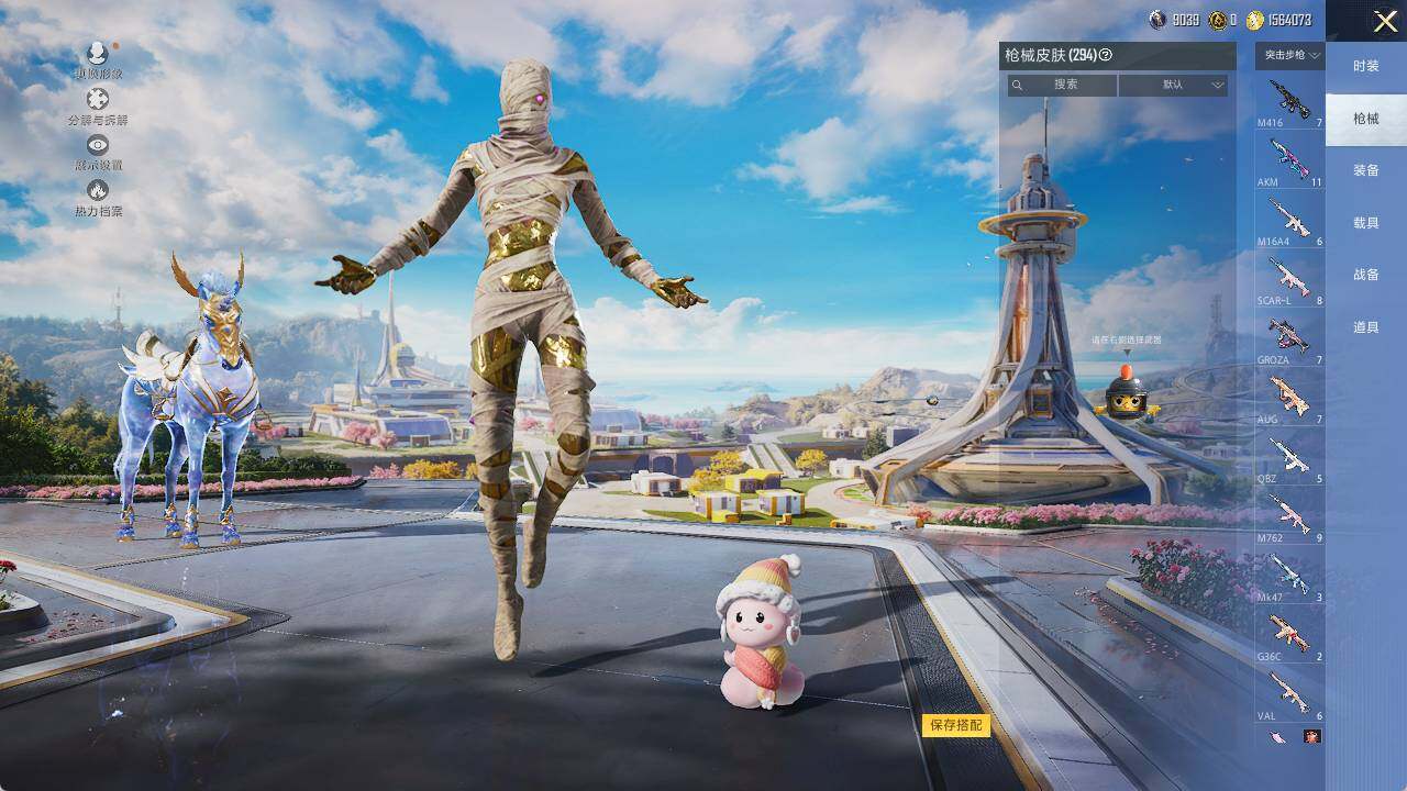 AKM-梦之光华,M416-五爪金龙,M416-墨龙九天,GROZA-镜光银凌,AUG-暖羊咩咩,P90-沙丘之主,P90-金丰海韵,Kar98K-巳巳如意,M24-镜域双华,AMR-炫光之旅,MG3-洛神天依
