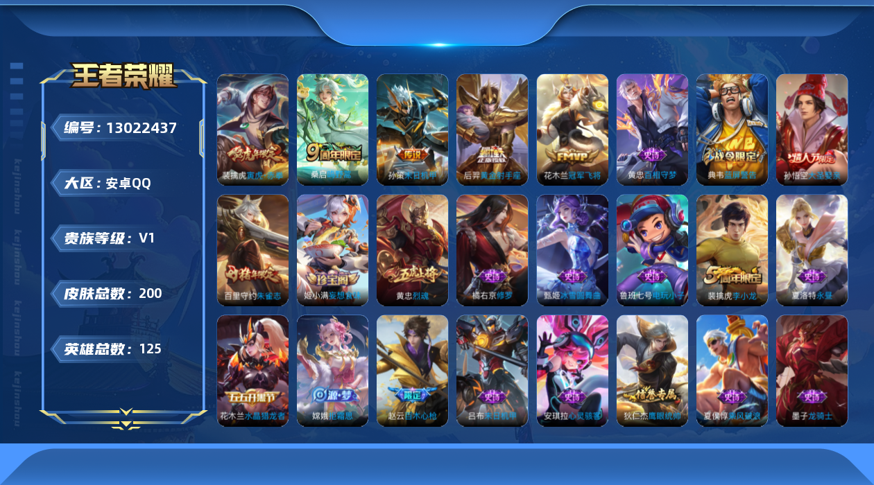 [13022437]安卓Q-V0-至尊星耀IV段位-125英雄-199皮肤-5传说-42史诗