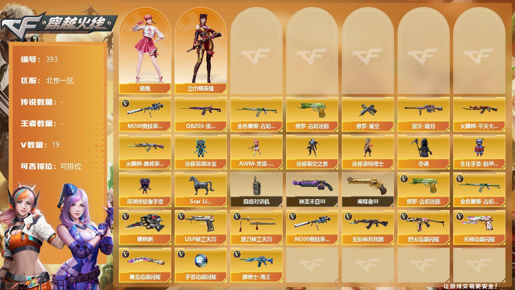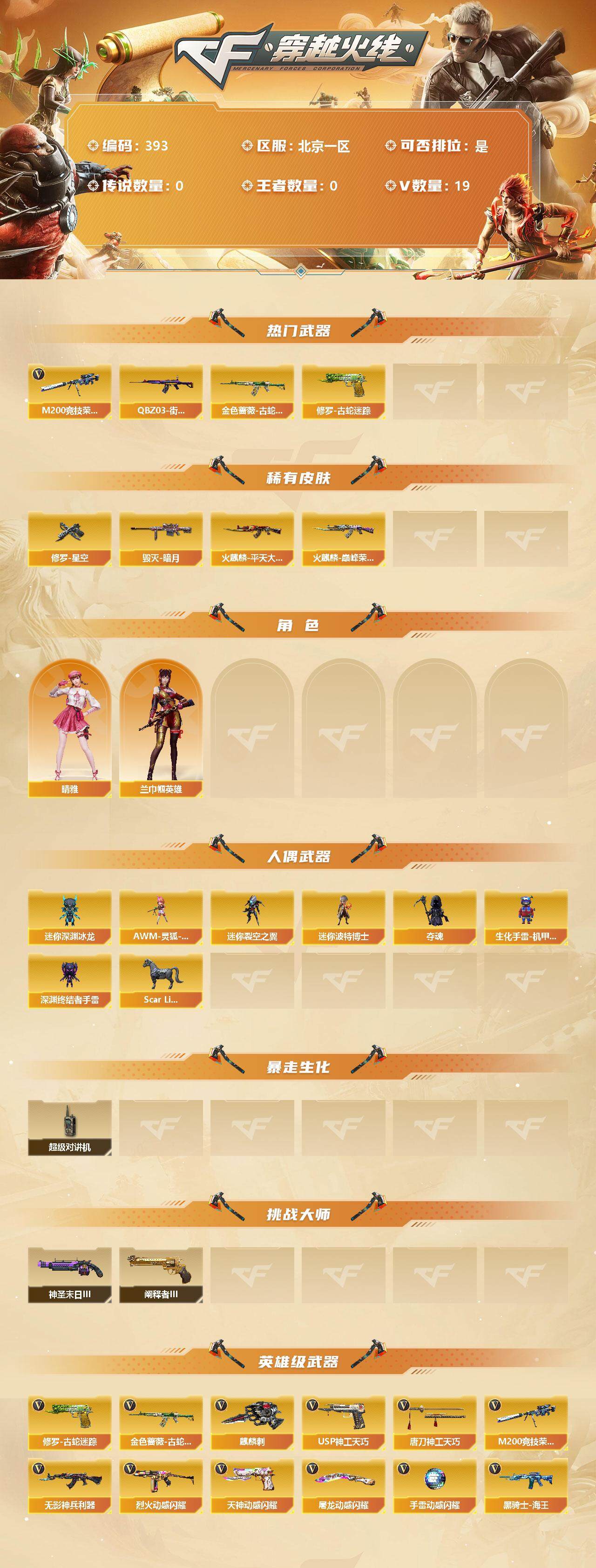 [13033948]【393】17V/100级/元帅/2英雄/金色蔷薇-古蛇迷踪/修罗-古蛇迷踪/M200-竞技荣光/QBZ03-街机/火麒麟-平天大圣/火麒麟-巅峰荣耀/毁灭-暗月/修罗-星空/兰-巾帼英雄/晴雅/Scar Light-马枪/AWM-灵狐-15周年嘉年华/迷你深渊冰龙/迷你裂空之翼/迷你波特博士/夺魂/生化手雷-机甲核心/深渊终结者手雷/超级对讲机/神圣爆裂者-末日/阐释者/无影-神兵利器/烈火-动感闪耀/黑骑士-海王/USP神工天巧/天神-动感闪耀/麒麟刺/唐刀神工天巧/屠龙-动感闪耀/手雷-动感闪耀/高爆手雷-古蛇迷踪/烟雾弹-古蛇迷踪