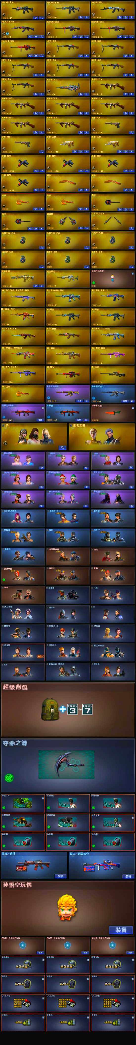 - [9890871]实名: 可修改 时装数: 941 载具数: 3 枪械数: 315 战备数: 238 热门装扮: 奇异狩猎者,梦幻火箭(新101),极限特训,幻影战神,甜心巧克力,未来战士,呆萌铁蟹,怪诞乔克,宝贝奶油派,浪漫波比,天使彩虹糖,梦魇先生,放客神游,迅捷狂鲨,鹰眼刺客,萌熊伴侣,好奇恐龙,都市猎人,彗云及圣,绚金战神,花间之火,新星烈龙,星之彼岸,2号机款机体服,灵感创作师,女娲后裔-赵灵儿,激萌罗小黑,兔兔白日梦,星兔领航员,赤蝎幽灵,派对舞王,飒粉甜心,小可学妹,水仙星,宙之时溯,小蓝,光极星,守护天翼,千金淑猫 载具: 玛莎拉蒂Ghibli(蓝),合金龙骨(蓝),玛莎拉蒂MC20(星石白) 稀有枪皮: UMP45雪国精灵,M762甜蜜誓约,M416五爪金龙,SCAR-L梦幻火箭,AKM甜心宝贝,AWM花间之火,AKM梦之光华,M416风花雪月,GROZA焦糖拿铁,SCAR-L青春物语,M416暖熊萌萌,M16A4垂柳戏鸭,AUG超新星,P90沙丘之主,PKM江南烟雨,M416电玩时刻,破片手榴弹粉粉猫爪,烟雾弹猫咪绅士,AKM-幽焰骑士,AUG-许七安,Kar98K-巳巳如意