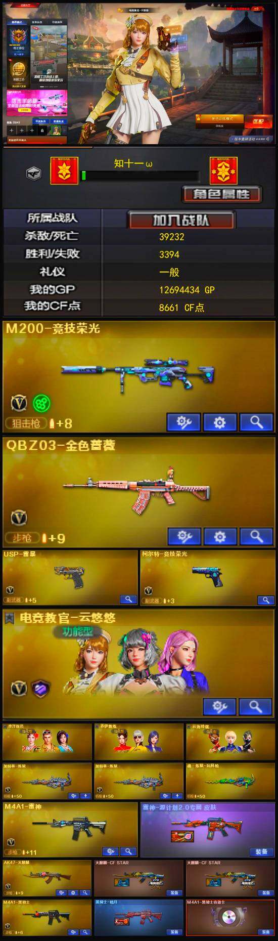 - [11676366]总资产:382.2M 11传说枪械 哈夫币:193K 可二次 可修改实名 优质装备:顶级安全箱(3x3) 烽火地带段位:黑鹰 全面战场段位:无段位 传说武器皮肤:SMG45冲锋枪-骑士,M16A4突击步枪-狩猎时刻,M4A1突击步枪-阿米娅,CAR-15突击步枪-阿米娅,复合弓-黑-天际线,Vector冲锋枪-狩猎时刻,G3战斗步枪-狩猎时刻,AWM狙击步枪-捞点薯条,腾龙突击步枪-捞点薯条,93R-捞点薯条,勇士冲锋枪-能天使-午夜邮差 史诗武器皮肤:SVD狙击步枪-暗夜猎手,M16A4突击步枪-竞赛选手,MP5冲锋枪-深海恐惧,AKM突击步枪-林中猎手,SV-98狙击步枪-林中猎手,PTR-32突击步枪-英雄,M250通用机枪-囚徒,沙漠之鹰-曙光,M700狙击步枪-竞技风