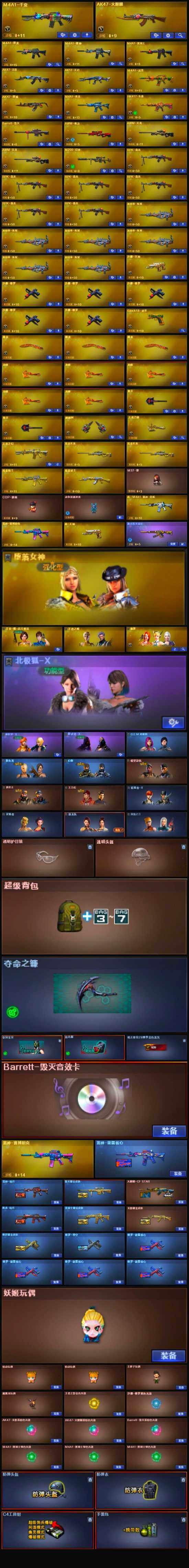 - [12100349]【商品标题】:山西一区-38V-3王者-2炫金 【热门武器】:Scar Light-白虎,M200-幻神,M200-竞技荣光,白虎-电玩蓝兔,M4A1-黑骑士,汤姆逊-烈龙*2,斯泰尔-蝴蝶,USP-雷暴 【王者炫金武器】:炫金火麒麟,炫金毁灭 【音效卡】:M200-幻神音效卡,AK47-火麒麟音效卡,M4A1-黑骑士音效卡 【稀有皮肤】:幻神-巅峰荣耀,雷神-荣耀之魄,火麒麟-战神关羽,火麒麟-心动糖果,黑骑士-冠军之势,毁灭-荣耀之怒,AWM-CFS 2020 【角色】:王者葵-惊若翩鸿,电竞教官-云悠悠,鹰,审判者 【人偶武器】:斯泰尔-蝴蝶,AWM-灵狐-15周年嘉年华,黄金迷你深渊冰龙,迷你超能女侍,夺魂,灵狐娃娃手雷 【暴走生化】:斯泰尔-蝴蝶 【挑战大师】:神圣爆裂者-末日III,激光毁灭者III,AK47-冰龙粉碎者,冰龙粉碎者-白马银枪 【英雄级武器】:M200-竞技荣光,柯尔特-竞技荣光,擎天-竞技荣光,高爆手雷-竞技荣光*2,闪光弹-竞技荣光,USP-雷暴,Scar Light-白虎,白虎-电玩蓝兔,无影-神兵利器,M4A1-雷神,M4A1-黑骑士,汤姆逊-烈龙*2,AK47-火麒麟*2,AN94-超新星,AWM-天龙,Barrett-毁灭,Barrett-极光,M200-幻神,AK-47-猩红传说*3,AK47-B-战神*2,屠龙 【特殊枪械】:蝴蝶斯泰尔+2烈龙,1白虎,1黑骑士,2烈龙,,1蝴蝶斯泰尔
