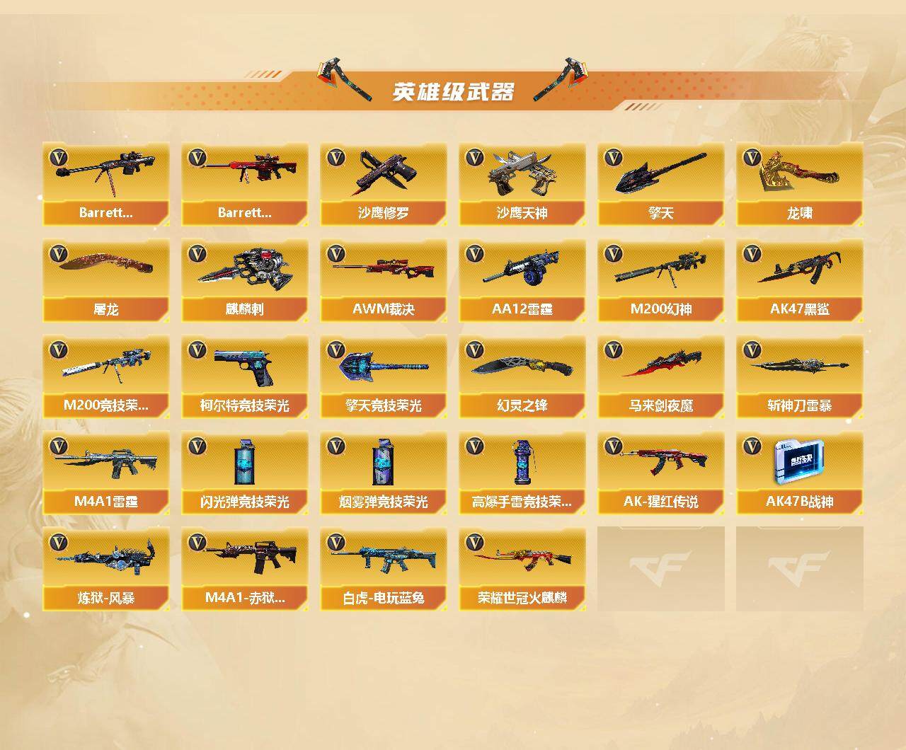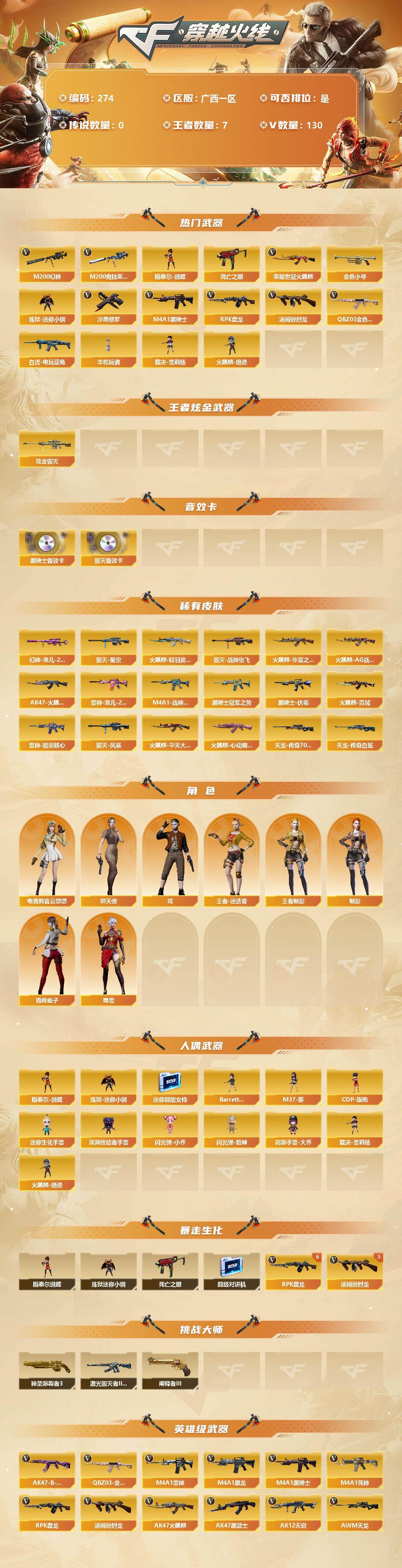 [13035261]【274】127V/100级/元帅/7王者/1炫金/3英雄/QBZ03-金色蔷薇/M200-幻神/M200-竞技荣光/死亡之眼/火麒麟-荣耀世冠/白虎-电玩蓝兔/金色小号/炼狱-迷你小钢/M4A1-黑骑士/汤姆逊-烈龙/RPK-盘龙/斯泰尔蝴蝶/羊驼玩偶/裁决-雪莉杨/火麒麟-绝迹/沙鹰-修罗/炫金毁灭/M4A1-黑骑士音效卡/Barrett-毁灭音效卡/幻神-宠儿/雷神-能量核心/M4A1-战神赵云/雷神-宠儿-2019MVP/火麒麟-AG战队皮肤/火麒麟-华夏之心/AK47-火麒麟-传奇EVEN/火麒麟-轻羽皮肤/火麒麟-平天大圣/火麒麟-百城/火麒麟-心动糖果/黑骑士-冠军之势/黑骑士-伏羲/毁灭-星空/毁灭-战神张飞/毁灭-风暴/AWM-天龙-传奇70KG/AWM-天龙-传奇白鲨/王者-魅影/王者-迷迭香/魅影/炫/电竞教官-云悠悠/蜀雪/炽天使/青霞仙子/Barrett-夜玫瑰/M37-葵/COP-旗袍/迷你超能女侍/迷你生化手雷/深渊终结者手雷/闪光弹-小乔/闪光弹-貂蝉/高爆手雷-大乔/超级对讲机/6盘龙/5烈龙/神圣爆裂者/阐释者/激光毁灭者III-白马银枪/柯尔特-竞技荣光/擎天-竞技荣光/高爆手雷-竞技荣光/烟雾弹-竞技荣光/闪光弹-竞技荣光/幻灵之锋/马来剑夜魔/斩神刀-雷暴/M4A1-雷霆/荣耀世冠-火麒麟/M4A1-雷神/M4A1-黑龙/M4A1-死神/AK47-火麒麟/AK47-黑武士/AK12-天启/AWM-天龙/Barrett-毁灭/Barrett-极光/AWM-裁决/AA-12-雷霆/AK47-黑鲨/AK-47-猩红传说/AK47-B-战神/AK47-B-常胜将军/炼狱-风暴/M4A1-赤狱骑士/沙鹰-天神/麒麟刺/擎天/龙啸/屠龙